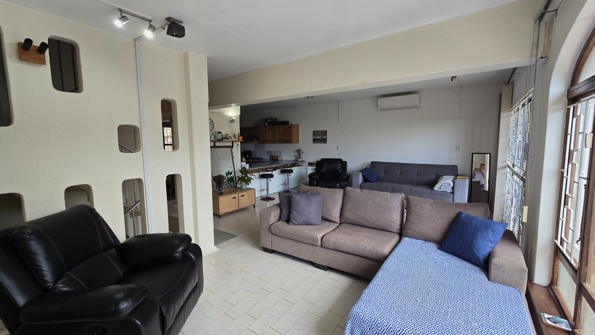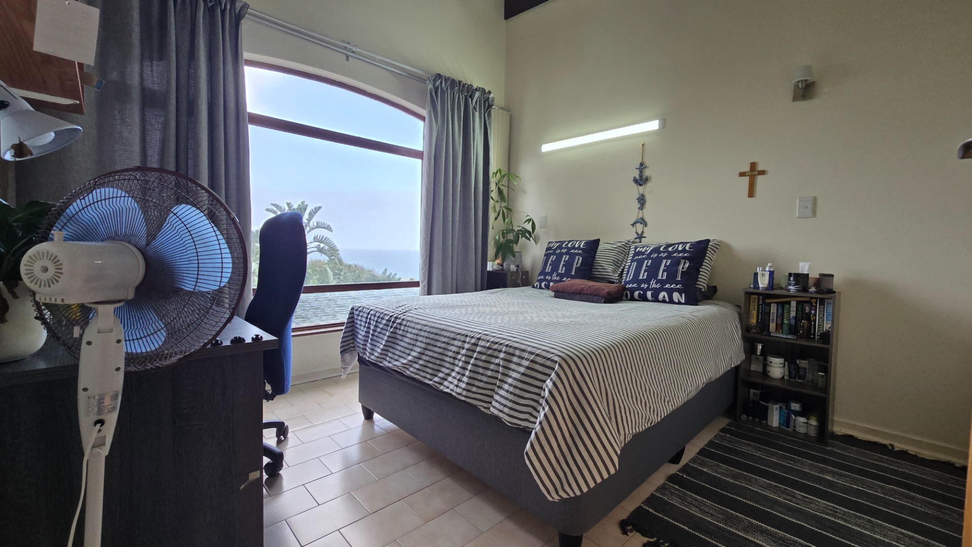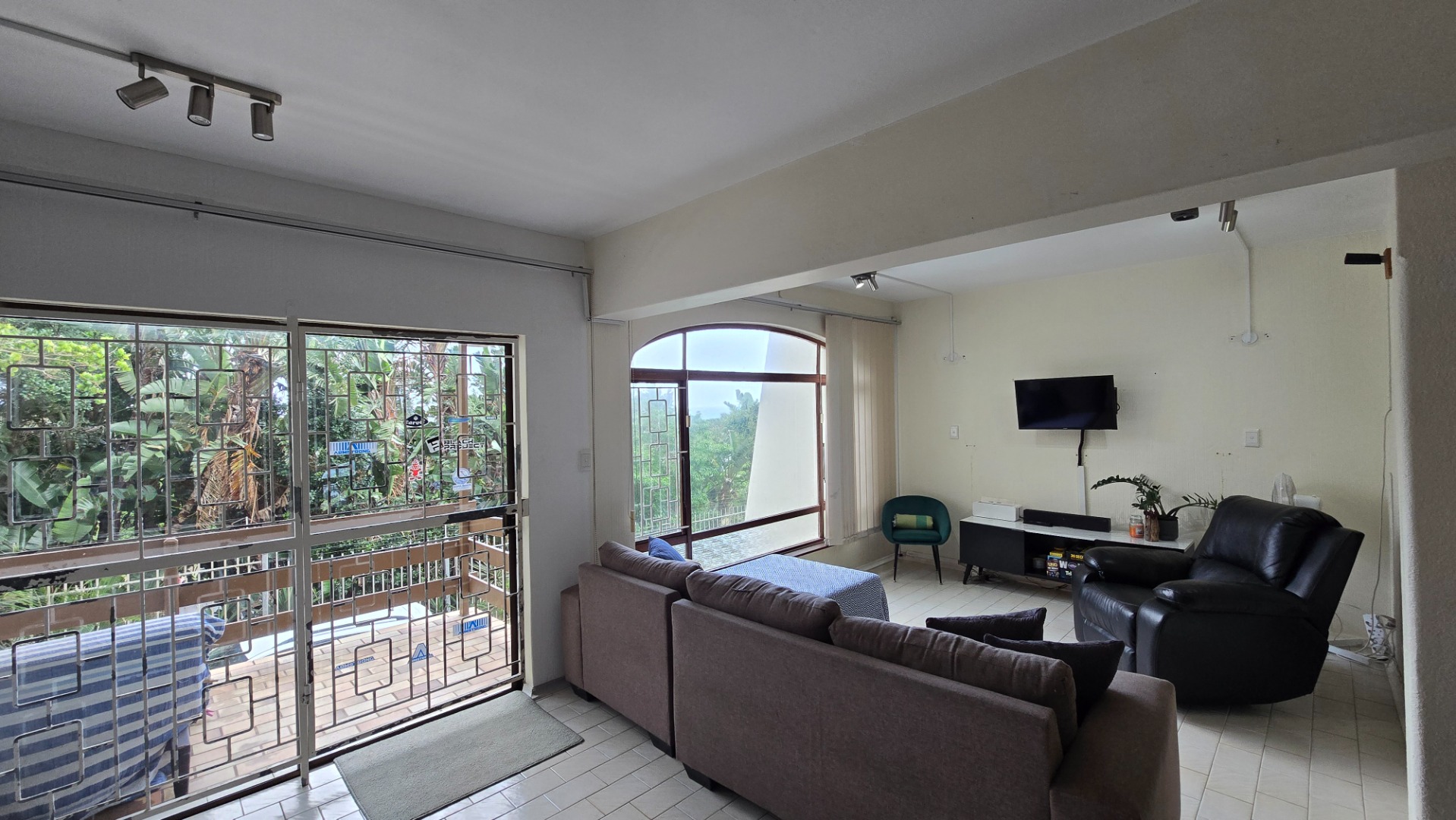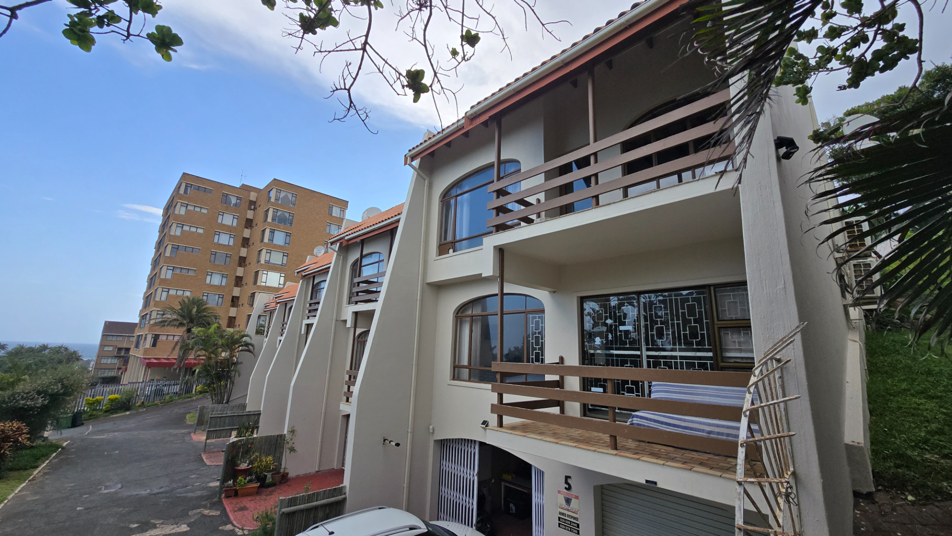 Discover this inviting multi-level residence nestled in the sought-after Scottburgh Central, offering a blend of comfort and coastal living. The property boasts a light-coloured exterior with traditional terracotta roof tiles and distinctive arched windows, creating an appealing kerb presence. Multiple balconies provide private outdoor spaces, perfect for enjoying the lush green surroundings and implied sea views.