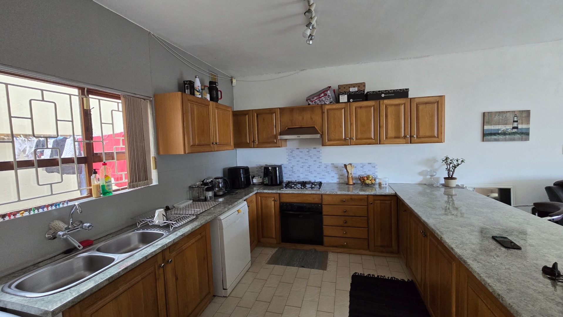 Step inside to an open-concept layout that seamlessly connects the kitchen, living, and dining areas. This spacious design is bathed in natural light, enhanced by large windows and a glass sliding door, and features air conditioning for year-round comfort. The functional kitchen is equipped with ample wooden cabinetry, granite-like countertops, a double sink, gas hob, electric oven, and dedicated dishwasher space, complemented by a convenient pantry and breakfast bar.