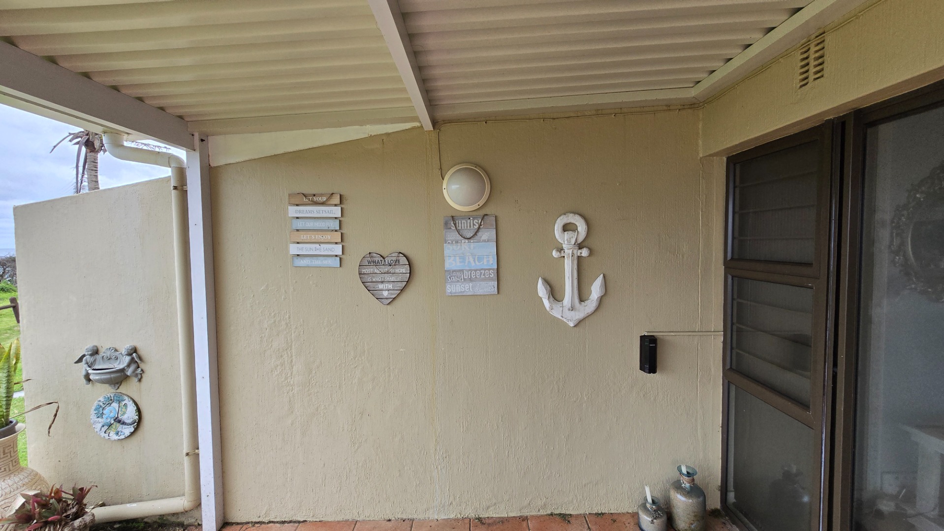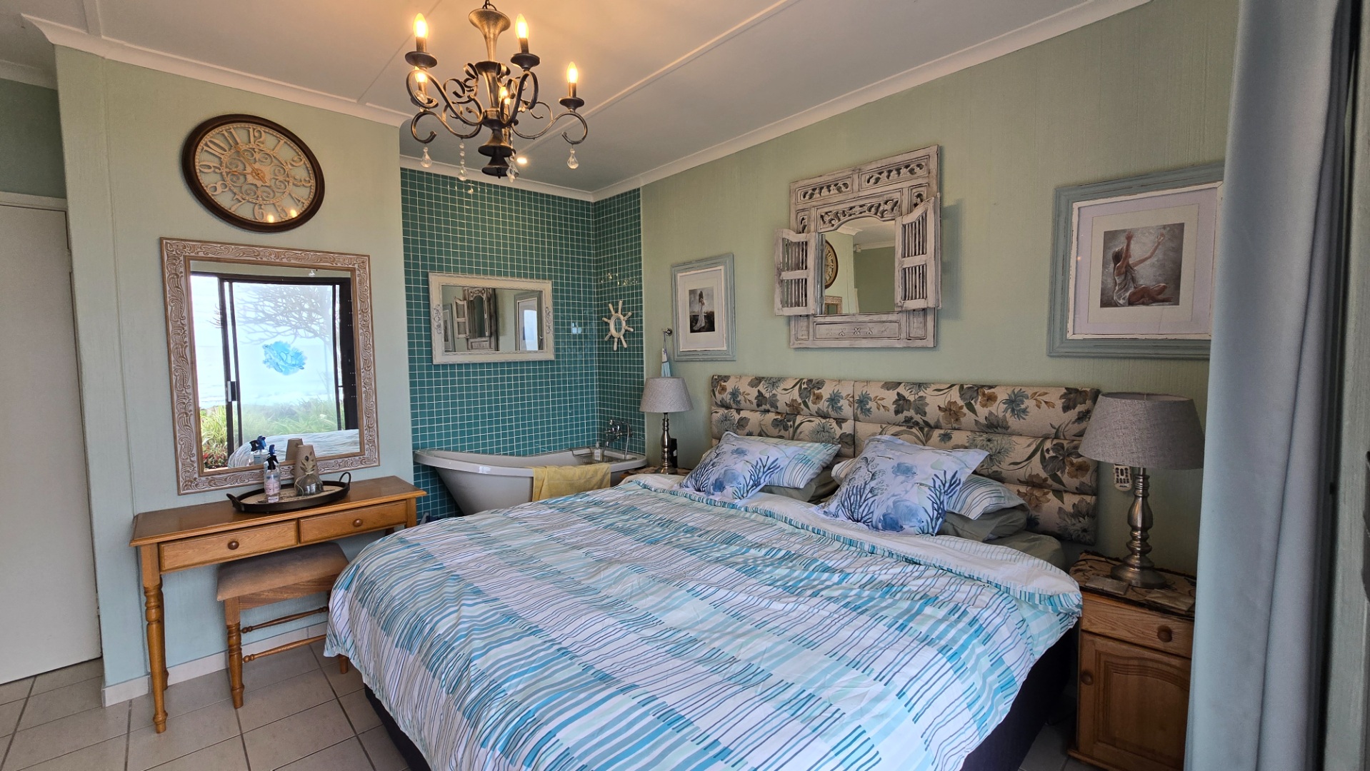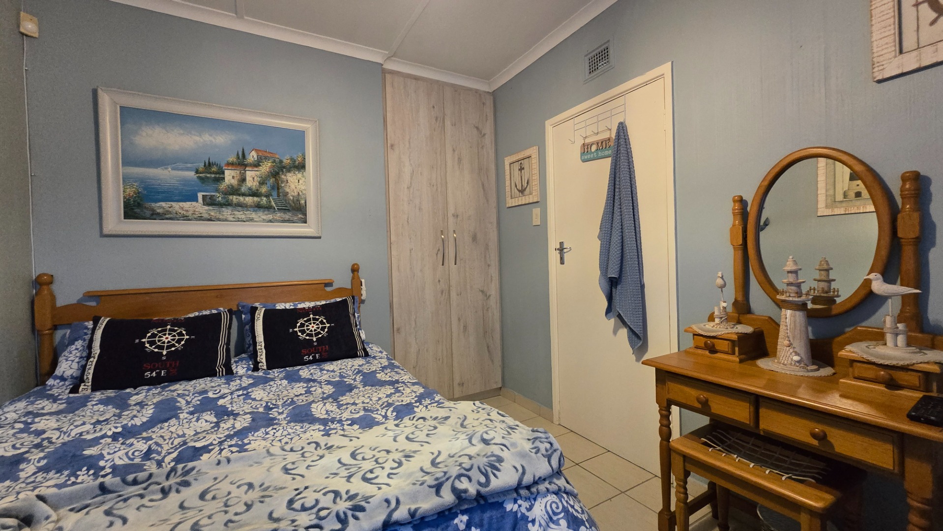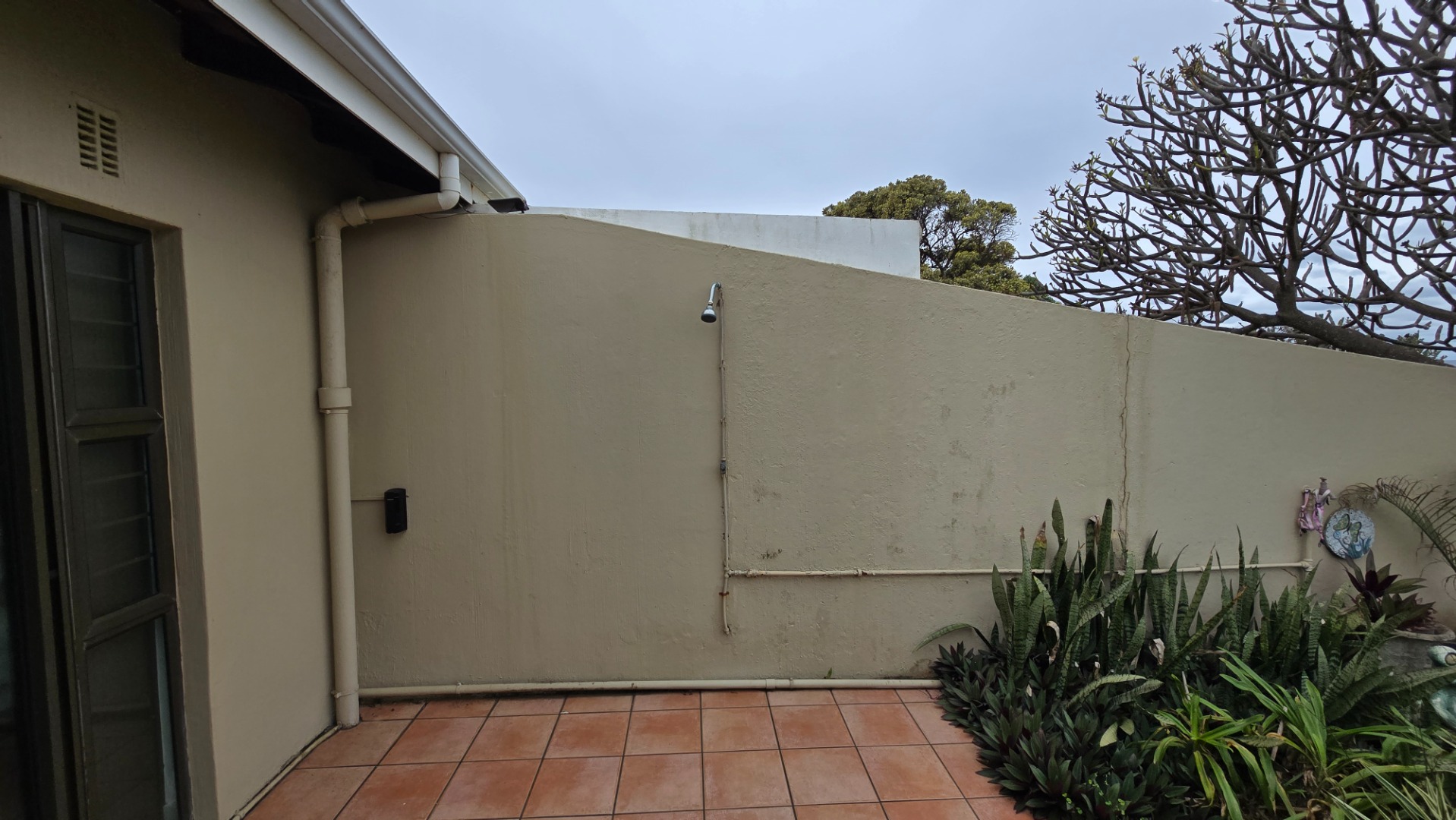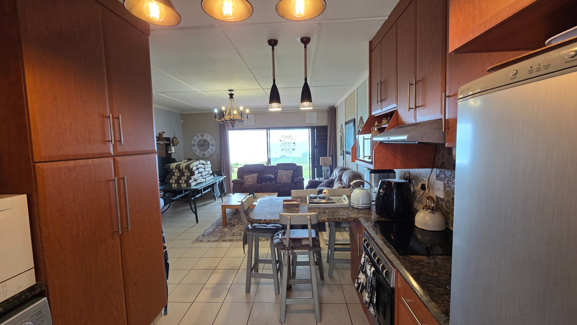Step outside to embrace the idyllic outdoor living. A spacious, covered patio with large sliding glass doors provides abundant natural light and offers captivating direct ocean views, leading to a private, well-maintained garden and grassy yard. Enjoy leisurely days by the communal pool or host gatherings at the communal braai area. An outdoor shower is a thoughtful addition for post-beach rinse-offs. The property also includes a single garage and an additional parking bay, with paving for easy access.