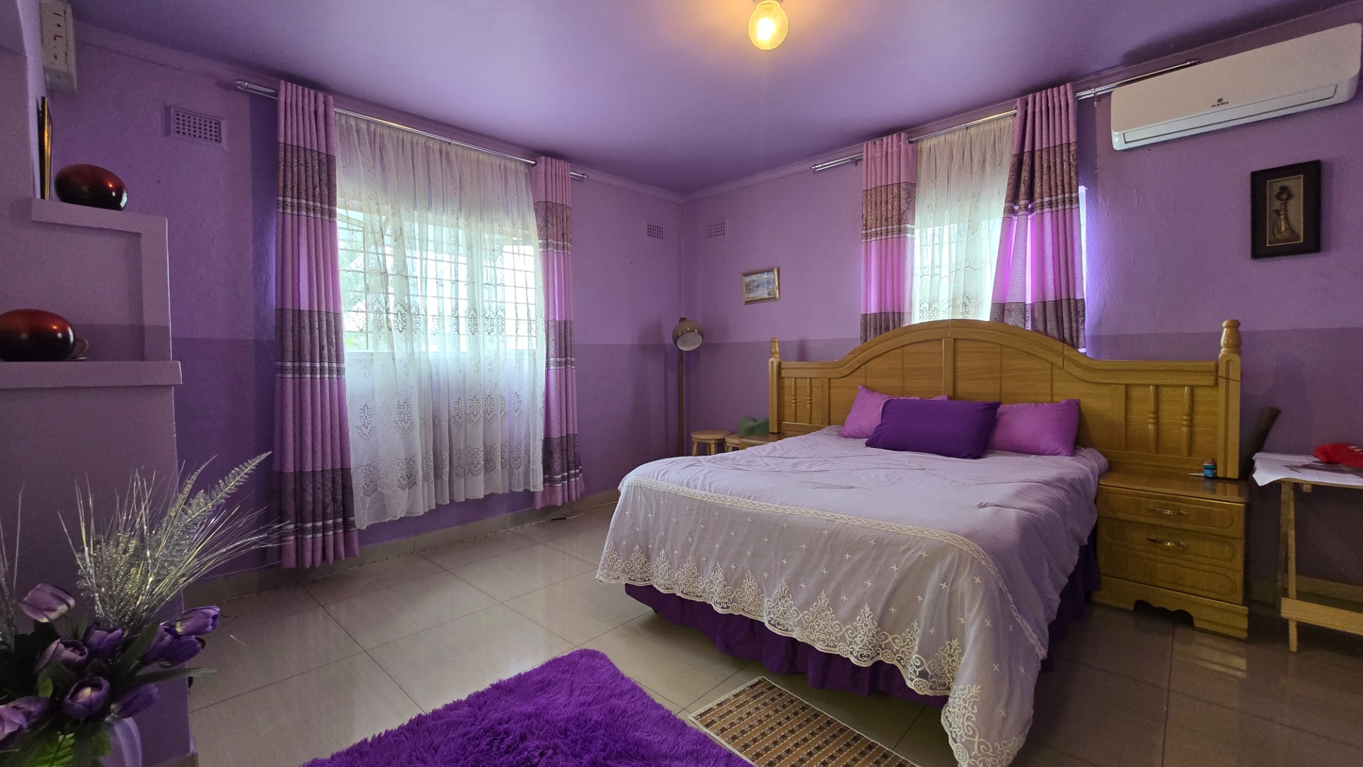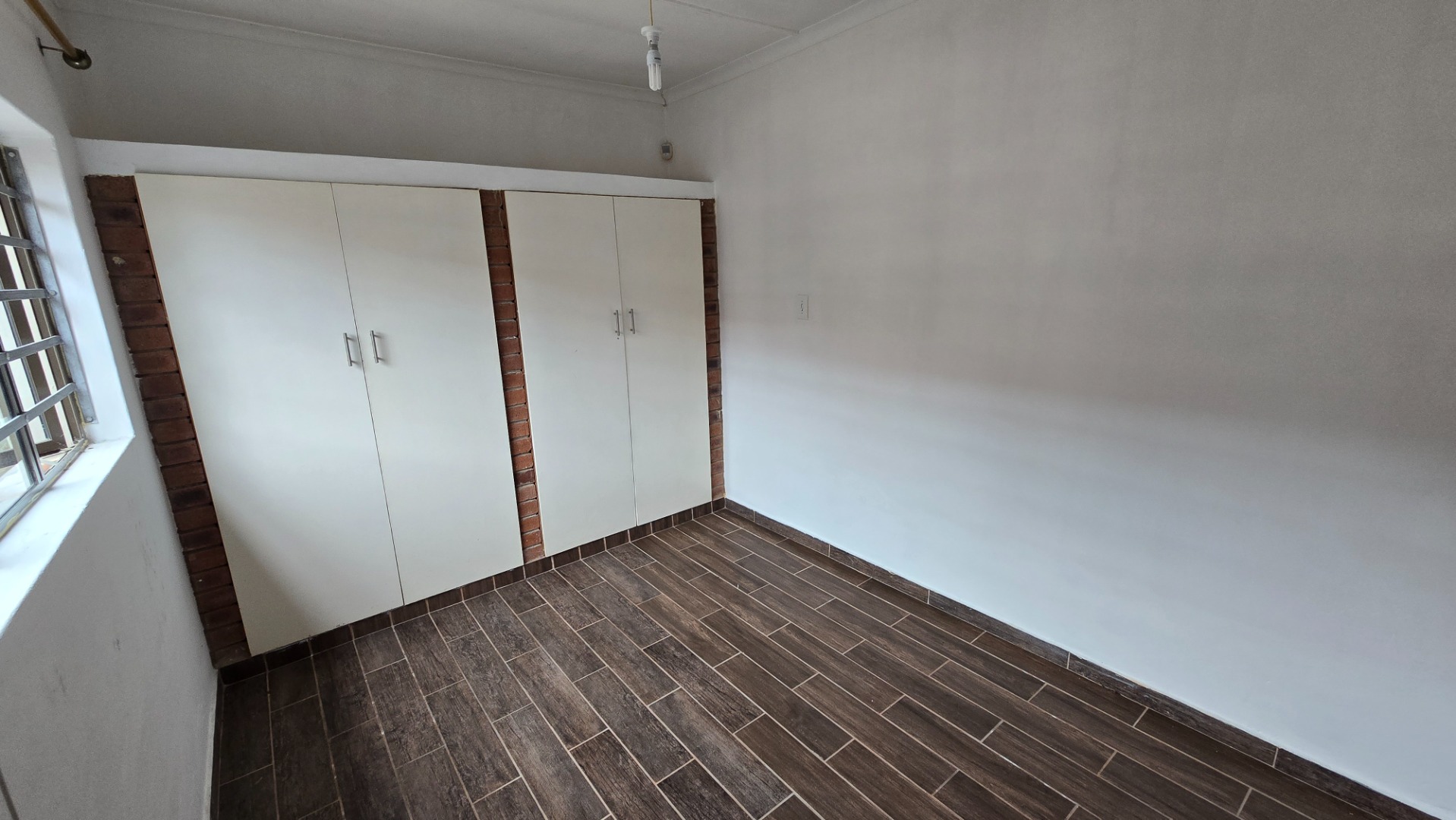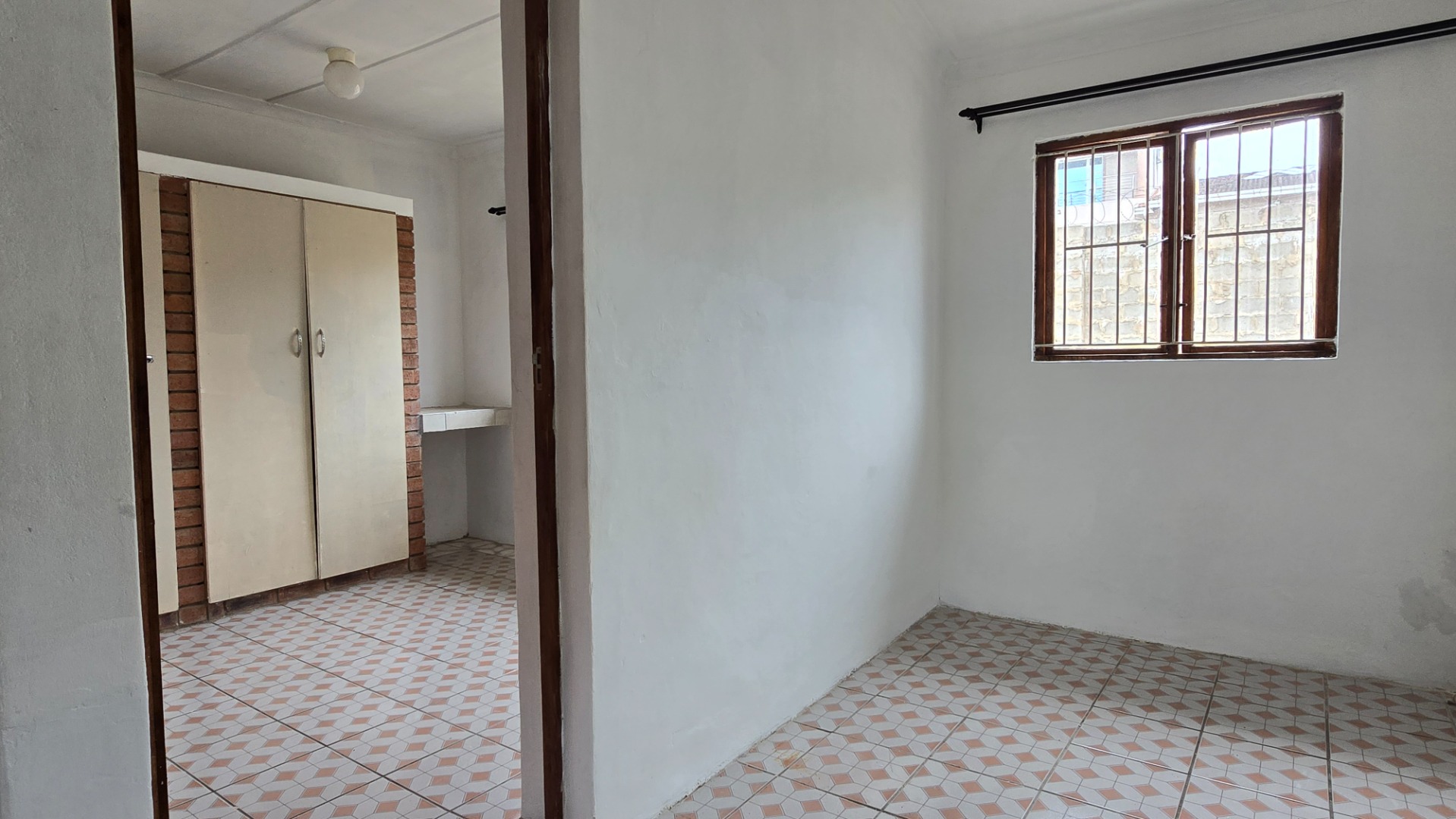 The main residence features two bedrooms and two bathrooms, including an expansive main bedroom with dressing area and en-suite. The open-plan lounge and kitchen are fully tiled and finished with granite countertops, ample cabinetry, and a combination gas and electric stove with dual ovens, flowing into a practical living space ideal for everyday family living. Attached to the main house are two flatlets—a bachelor unit and a one-bedroom unit—which can remain income-generating or be incorporated into the home to accommodate a larger family. A staircase from one of these flatlets leads to a slabbed roof, presenting a valuable opportunity for further development or additional accommodation, subject to approvals.