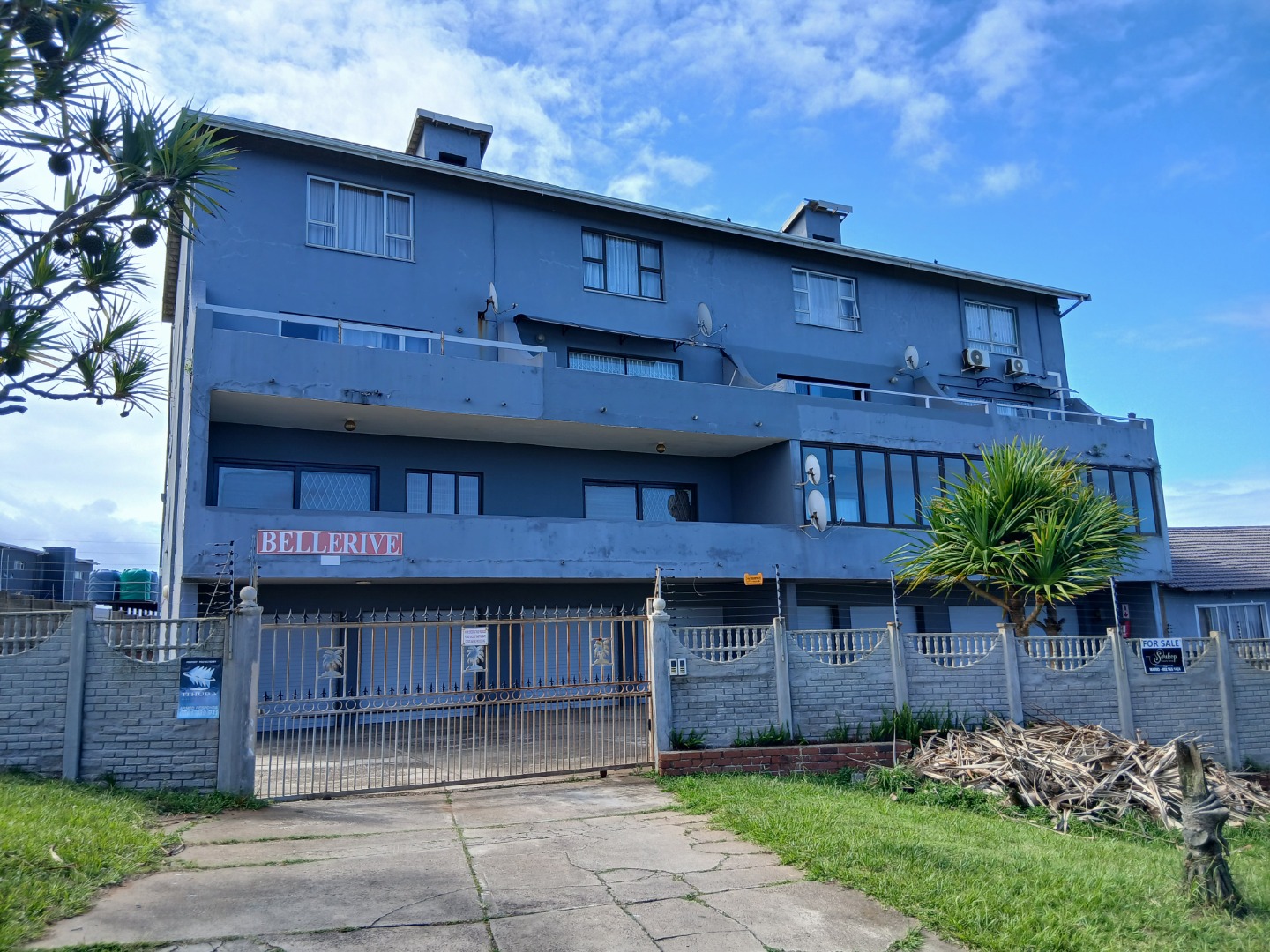 Discover this multi-story complex unit, offering comfortable living in the coastal town of Umkomaas, South Africa. The property presents an established facade with a secure, gated entrance and balconies, providing residents with private outdoor spaces.