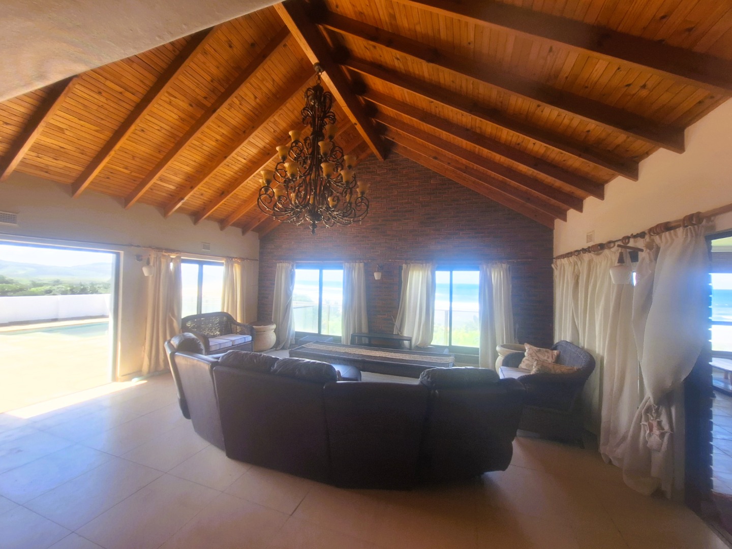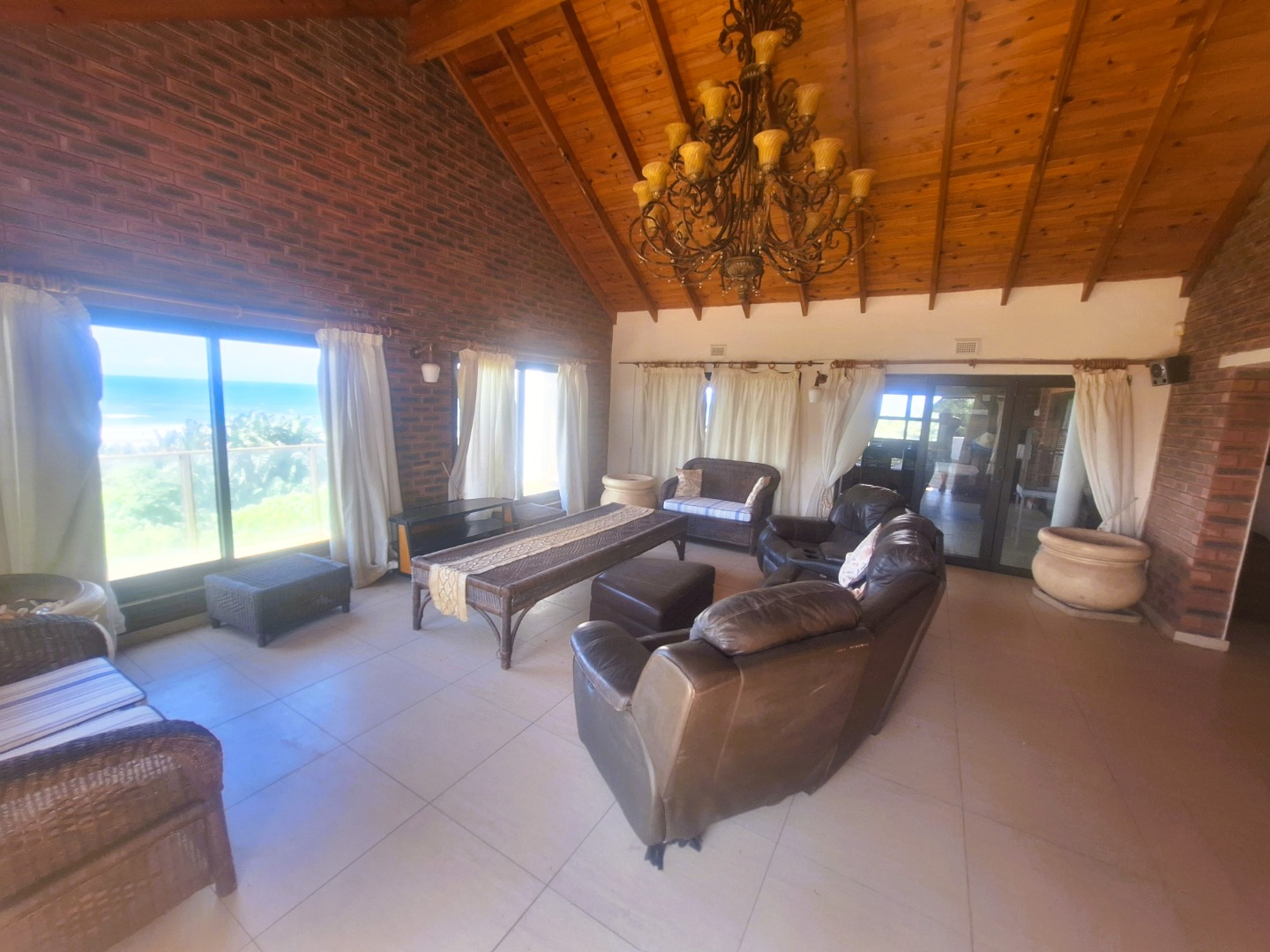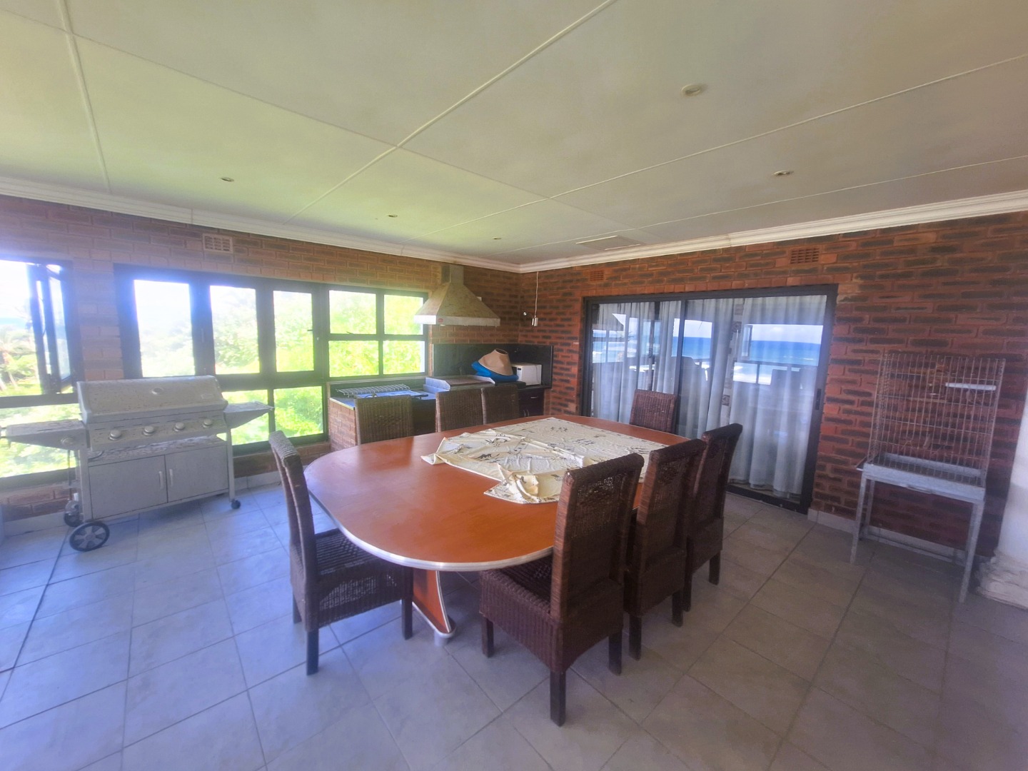 Well designed, up market and furnished Beachfront home in the prime suburb of Umzumbe KZN. This amazing property was practically designed with very spacious and centrally located open plan Kitchen and living spaces effortlessly flowing from the dining room, build in Bar area with Poker table into the Magnificent lounge with impressive chandelier, Breathtaking braai room enclosed veranda with build in Jacuzzi, braais and entertainment area. It also offers a large open veranda with swimming pool.