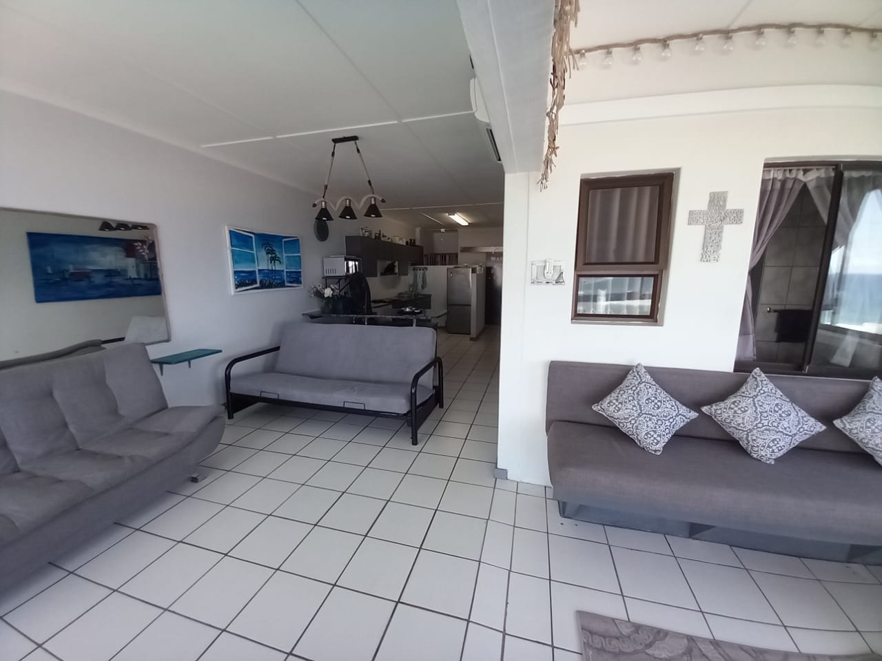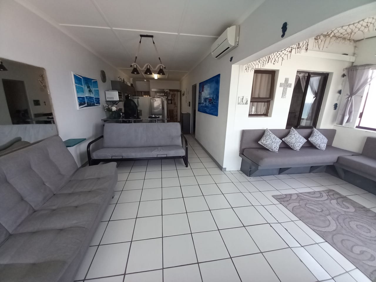 Discover comfortable coastal living in this inviting 2-bedroom, 2-bathroom rental unit located in the desirable Manaba Beach suburb of Margate. Designed for convenience and relaxation, this property features an open-plan lounge area that seamlessly connects to a well-appointed kitchen, perfect for everyday living and entertaining. Sliding doors enhance the flow and allow for natural light, offering glimpses of the scenic sea views. This residence is ideally suited for individuals or small families seeking a lock-up-and-go lifestyle by the sea. The property includes two dedicated garages, providing secure parking and additional storage. Residents can enjoy access to a communal swimming pool, perfect for cooling off on warm days, and a communal braai area for social gatherings. A dedicated family TV room adds to the comfort and functionality of the home. Situated within a secure gated community and security complex, peace of mind is paramount. The property benefits from an access gate and security gate, ensuring controlled entry. The entire complex is totally walled, offering an enhanced sense of privacy and security. Basic ADSL connectivity is available, catering to modern communication needs. Manaba Beach, a popular coastal destination in Margate, is renowned for its beautiful beaches and opportunities for aquatic activities. This suburban setting provides a tranquil environment while remaining accessible to local amenities and attractions, making it an excellent choice for those who appreciate seaside living. Key Features: * Two bedrooms, two bathrooms (one en-suite) * Open-plan lounge and kitchen * Two secure garages * Communal swimming pool and braai area * Gated community and security complex * Scenic sea views * Family TV room * ADSL connectivity