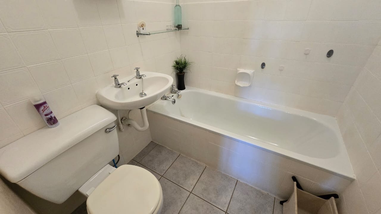 The apartment features two well-proportioned bedrooms, with the main bedroom offering an en-suite bathroom. A separate guest toilet serves the second bedroom and visitors. Both bathrooms are functional and tiled for easy upkeep. Practicality is enhanced with a dedicated single garage and an additional parking space.