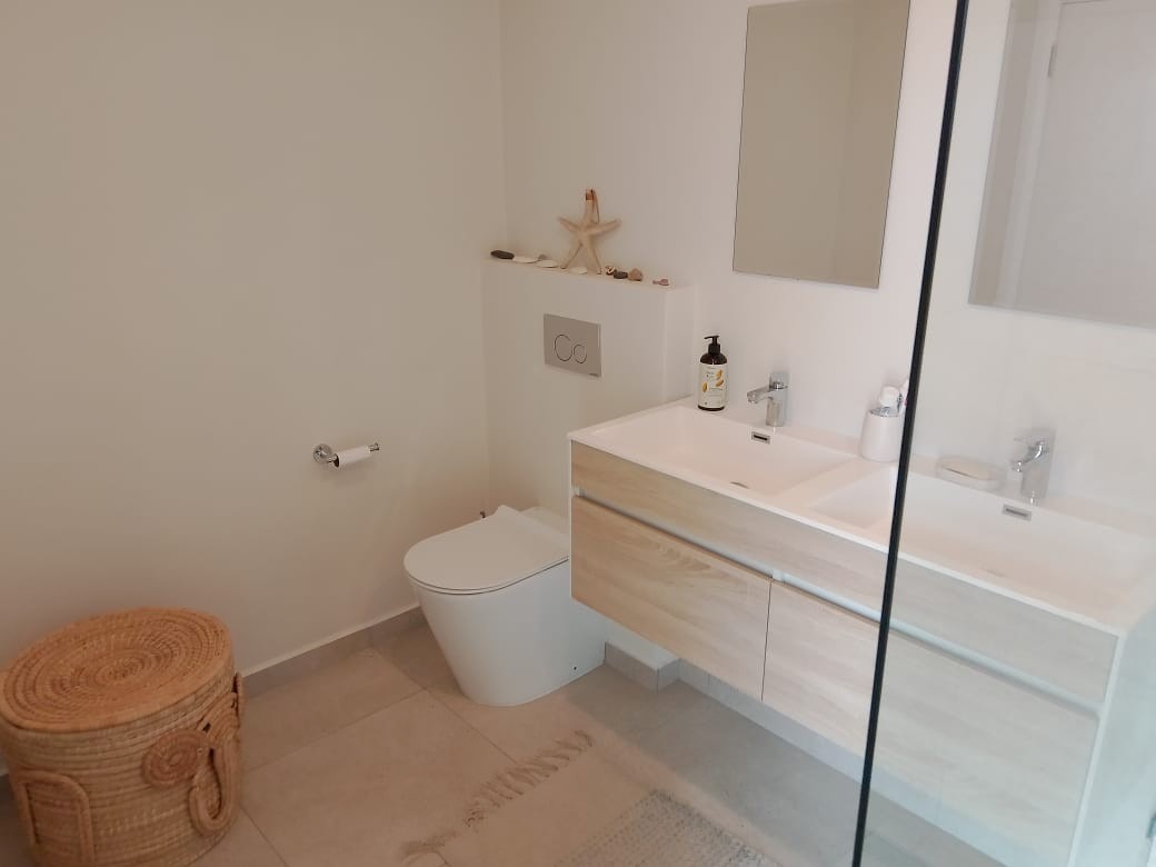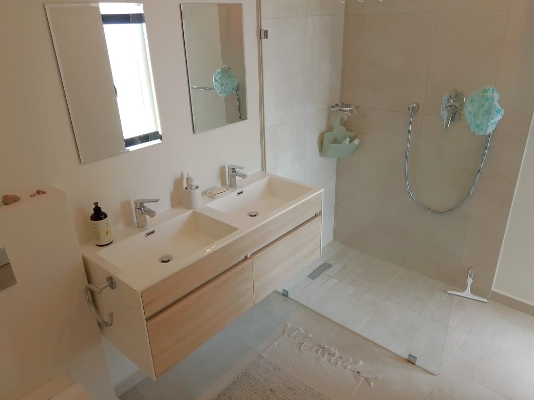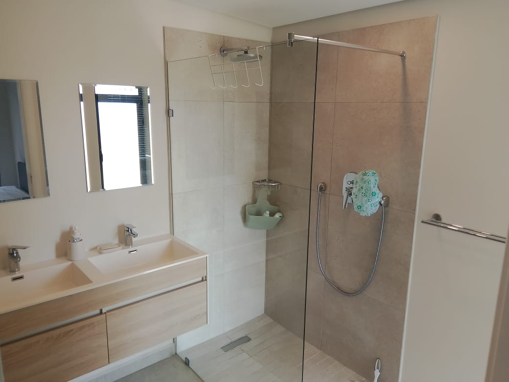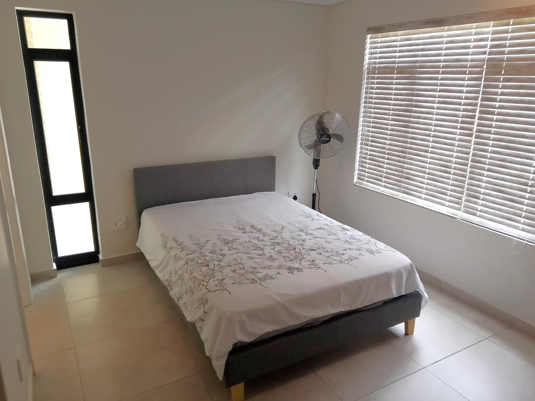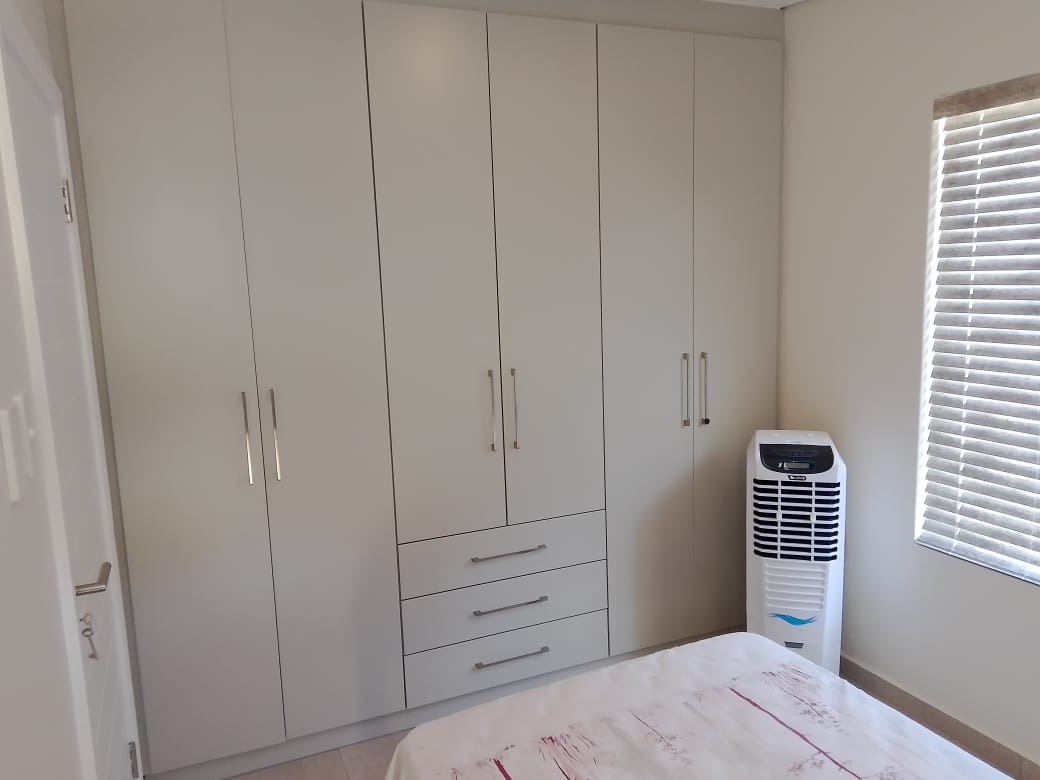 The home offers two well-sized family bedrooms with built-in cupboards, a beautifully designed family bathroom with a shower, basin, and toilet, and a luxurious main bedroom with an en-suite bathroom featuring a shower, toilet, and his-and-hers basins. Adding to the appeal are the eco-friendly features, including an inverter system for uninterrupted power supply and a prepaid electricity meter, while water is excluded from the rental. The estate is secured by a 24-hour manned security booth, providing peace of mind in a safe and tranquil environment. The rental is R11,000.00 per month, with a deposit of R16,500.00, which includes half a month’s rent for furniture and a R1,000 water deposit, and a once-off lease fee of R750. This fully furnished property (except for a TV) offers the perfect balance of modern comfort, natural beauty, and secure estate living.