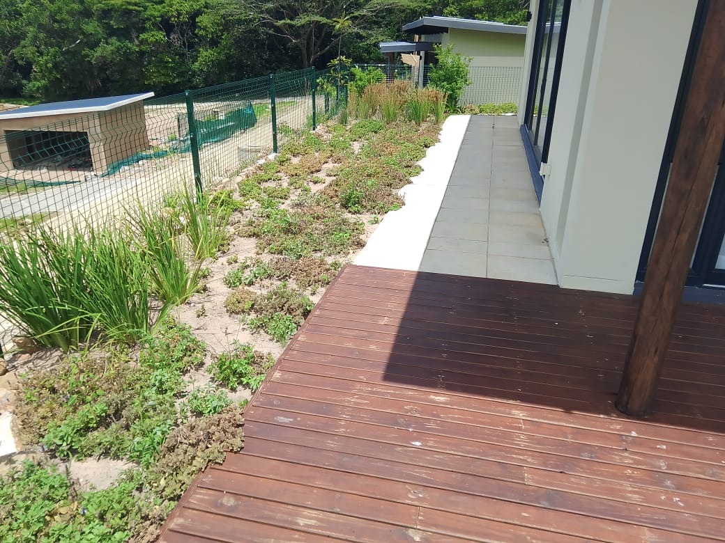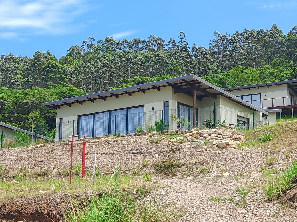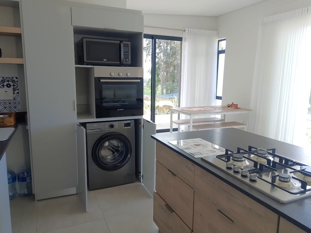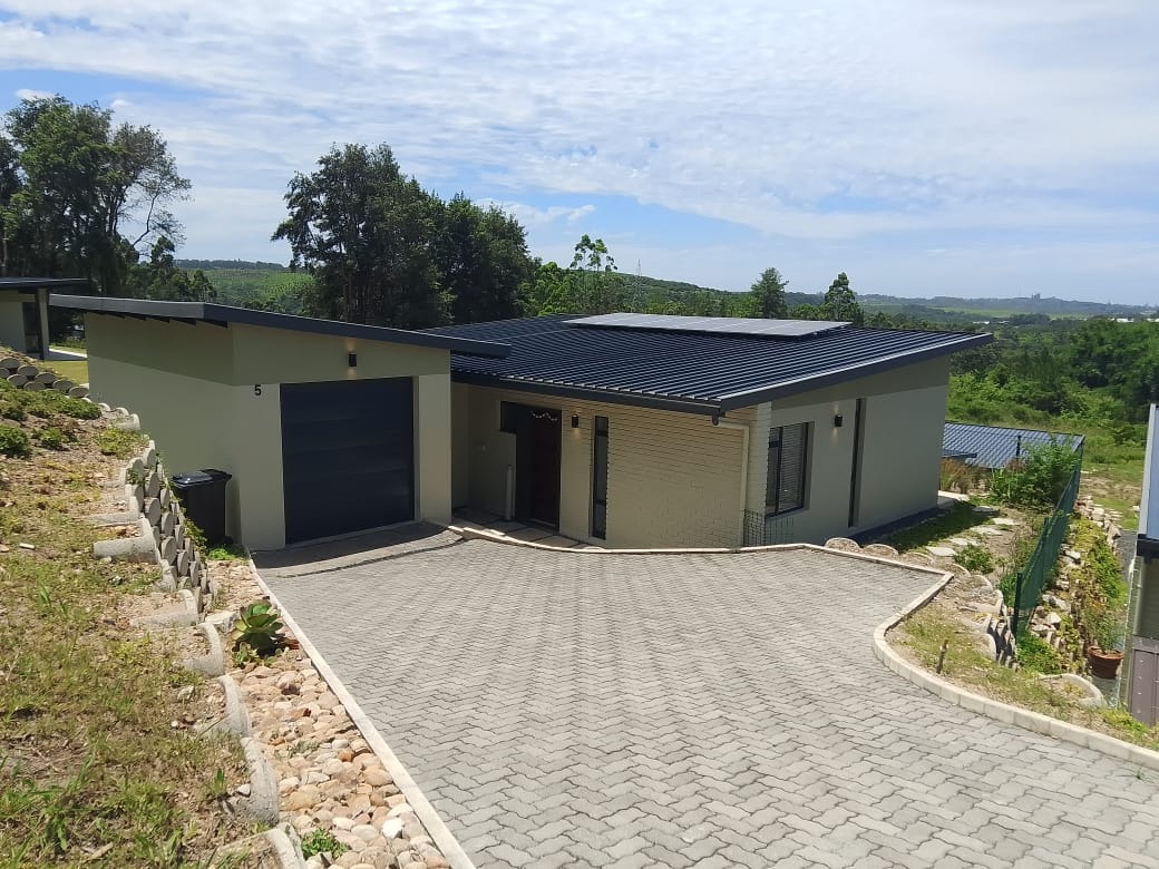 Welcome to Serenity Hills Eco Estate, an exceptional community that embodies eco-conscious, future-minded living. Nestled among lush natural surroundings, rocky outcrops, and rolling hills, this estate offers a peaceful escape just nine minutes inland from Uvongo and Margate. The unit is pet friendly for one small breed dog and includes a single lock-up garage for secure parking. This brand-new home comes fully furnished, with the exception of a TV, and welcomes you with a modern, minimalist aesthetic and premium finishes throughout. As you step inside, you are greeted by a stunning open-plan kitchen that flows seamlessly into the lounge area. The kitchen is a dream for any home chef, featuring a central island with breakfast seating, a gas stove, and an electric oven. The lounge opens through expansive sliding doors onto a wraparound deck, offering breathtaking views of the surrounding greenery and creating the perfect space for relaxation or entertaining guests.