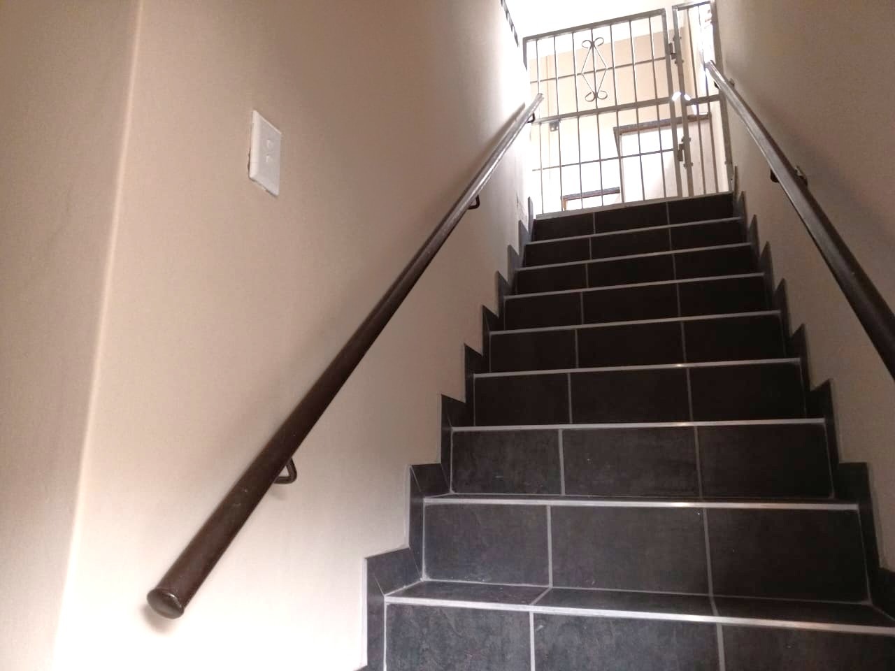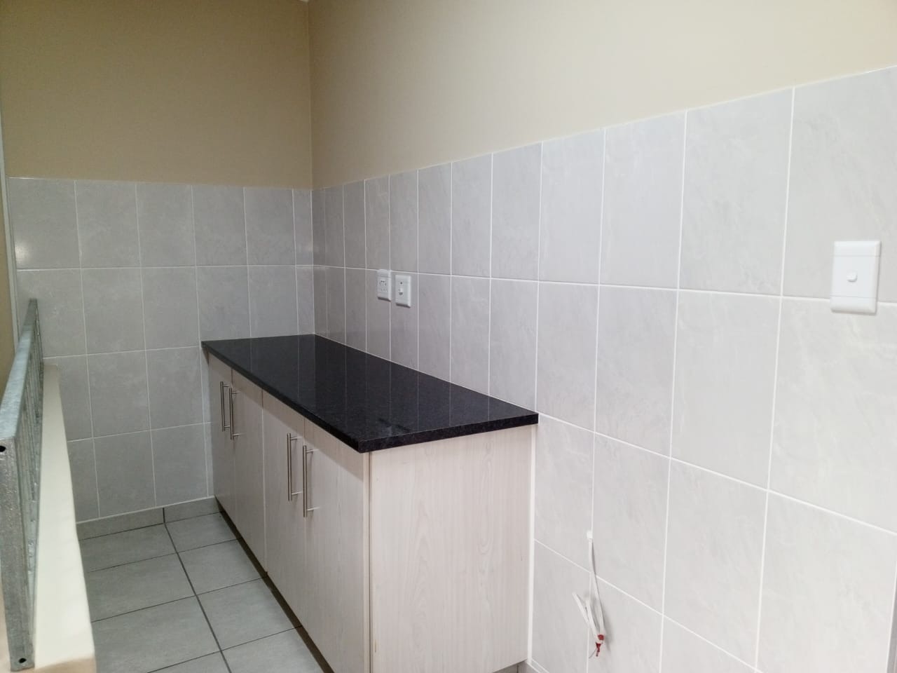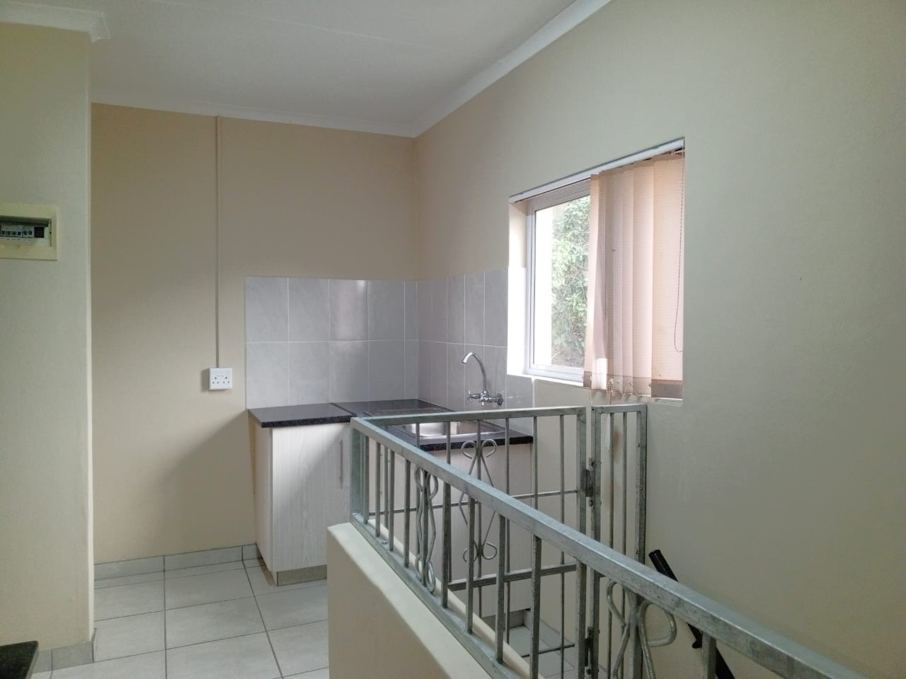 Just up the stairs from the door you walk straight into the open plan kitchen area with ample cupboards and gated off the stairs for your safety.