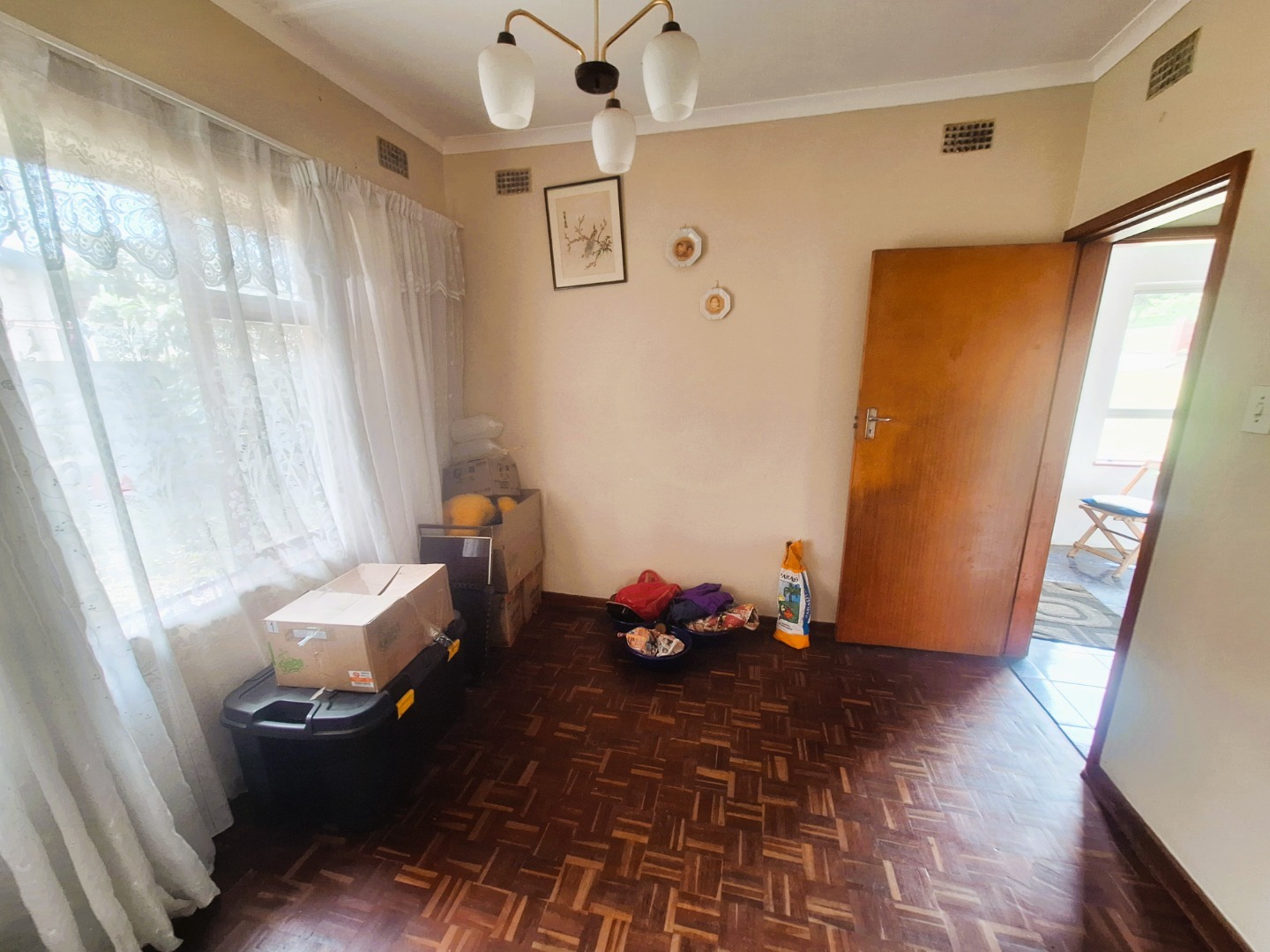 This neat and inviting 3-bedroom family home is situated in a quiet, well-established area, offering a peaceful lifestyle for its residents. The home features beautiful parquet flooring throughout, with a tiled kitchen that offers ample cupboard space. Just off the kitchen is a versatile room that can be used as a laundry area or for extra storage. The open-plan dining area comfortably accommodates a six-seater table, while the spacious lounge opens through large sliding doors onto a veranda overlooking the garden — ideal for relaxing or entertaining.