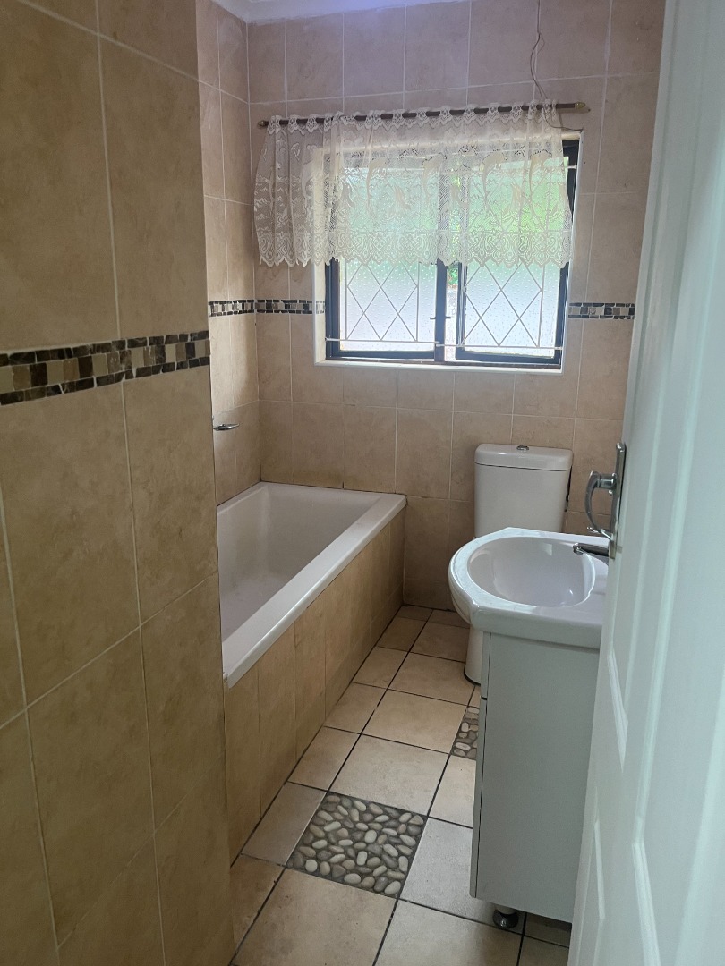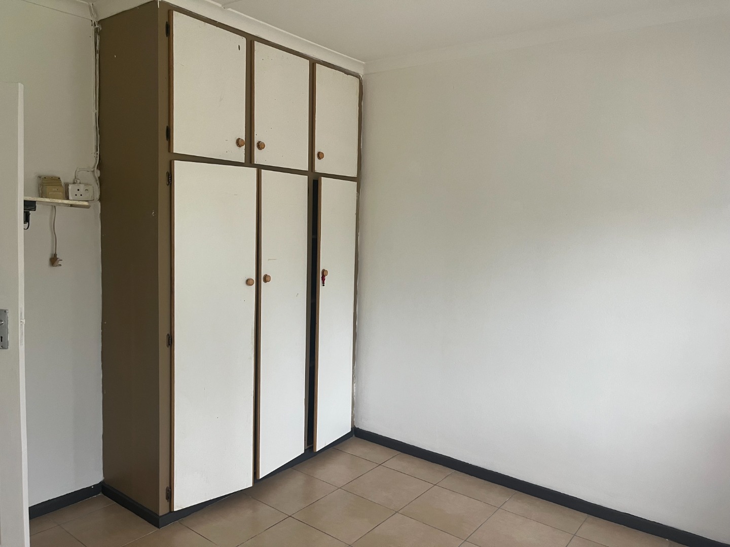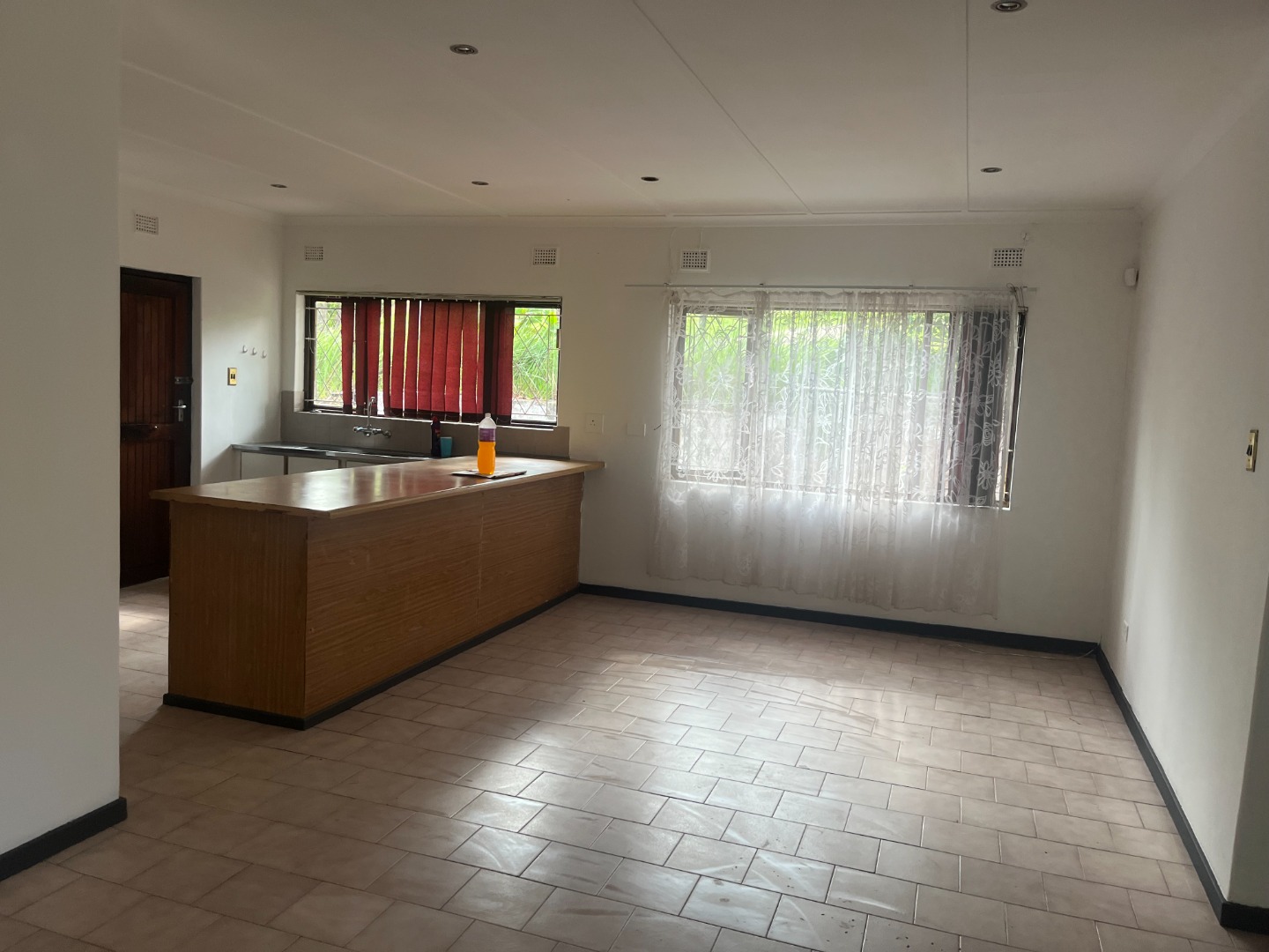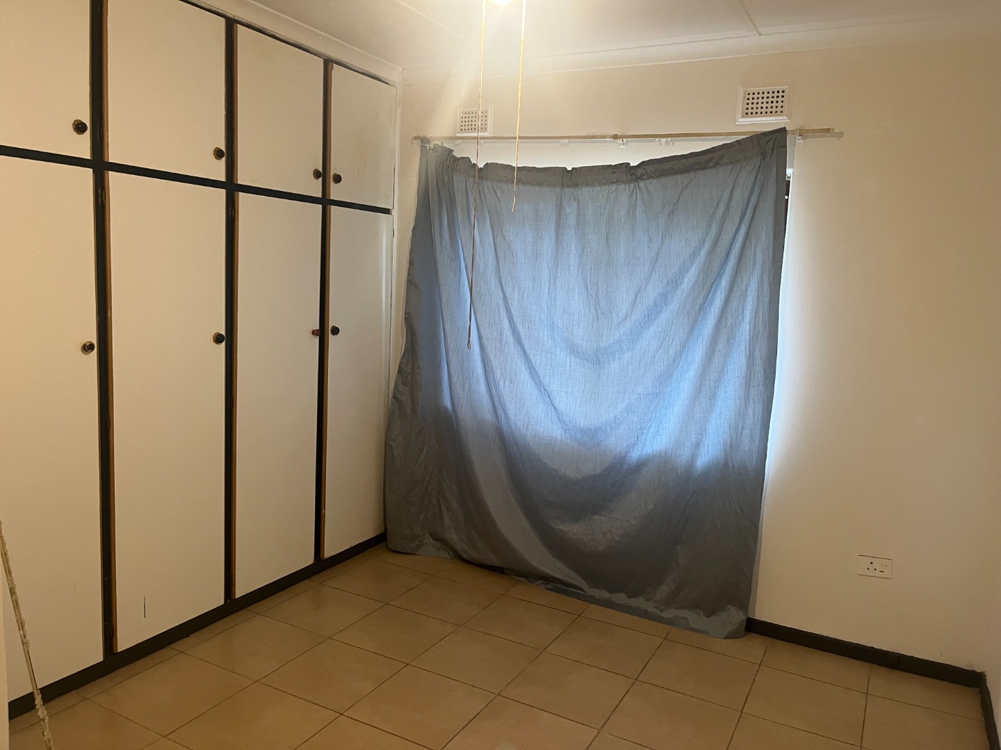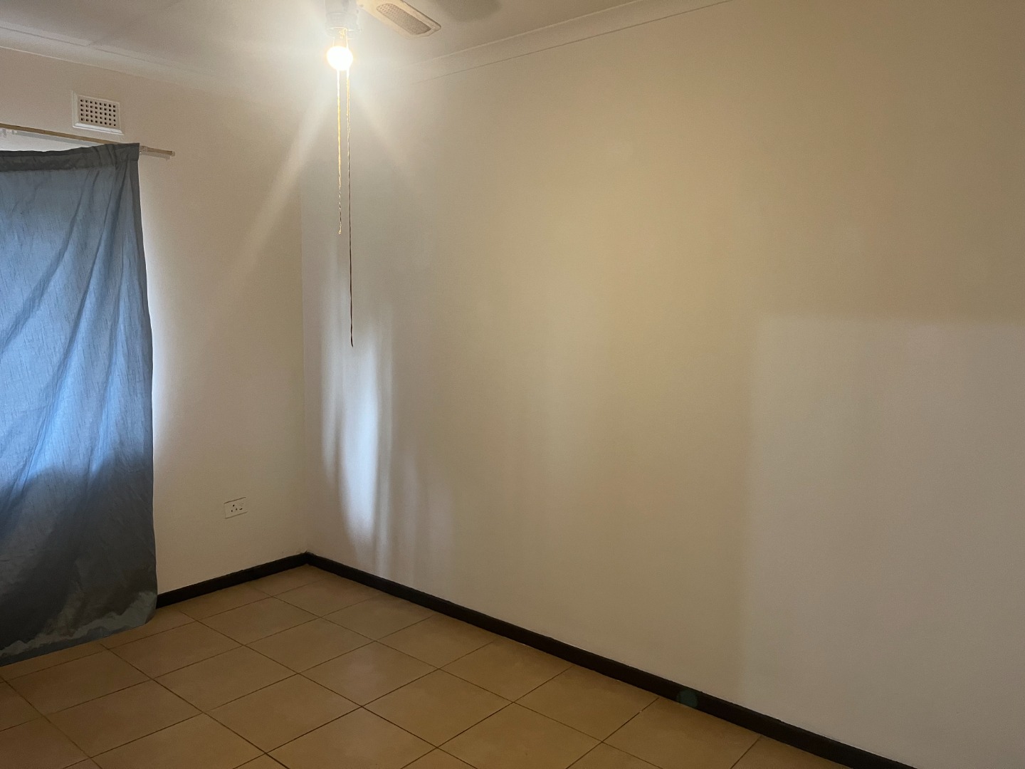 Spacious garden with pool, family home with 3 bedrooms and 2 bathrooms off patio into open living area with fitted kitchen. No stove. Laundry off kitchen with access to back courtyard. Single garage with direct access into house. Walled and gated.