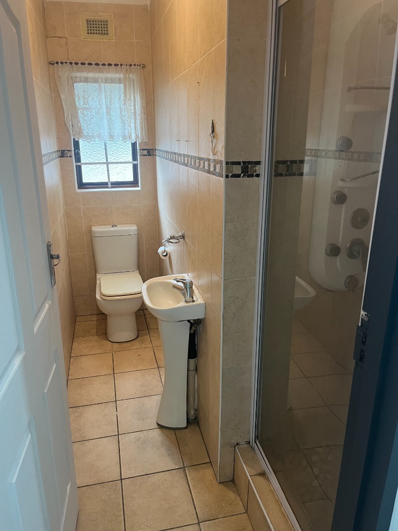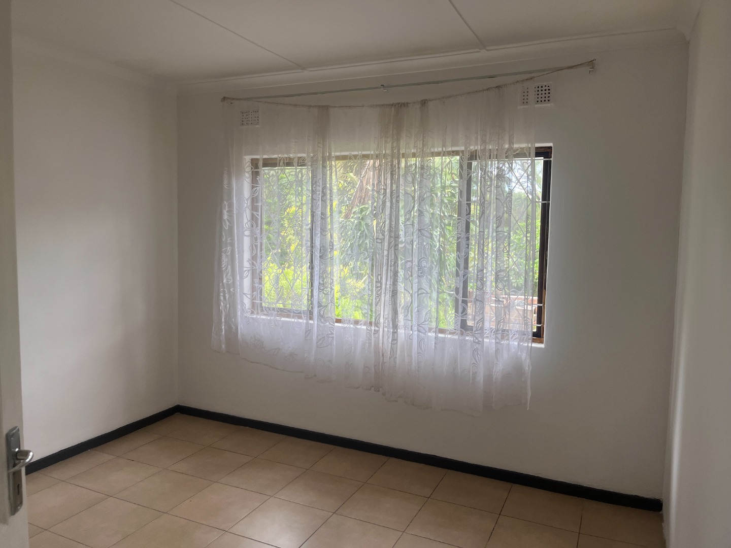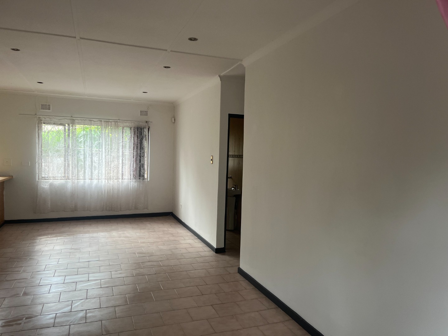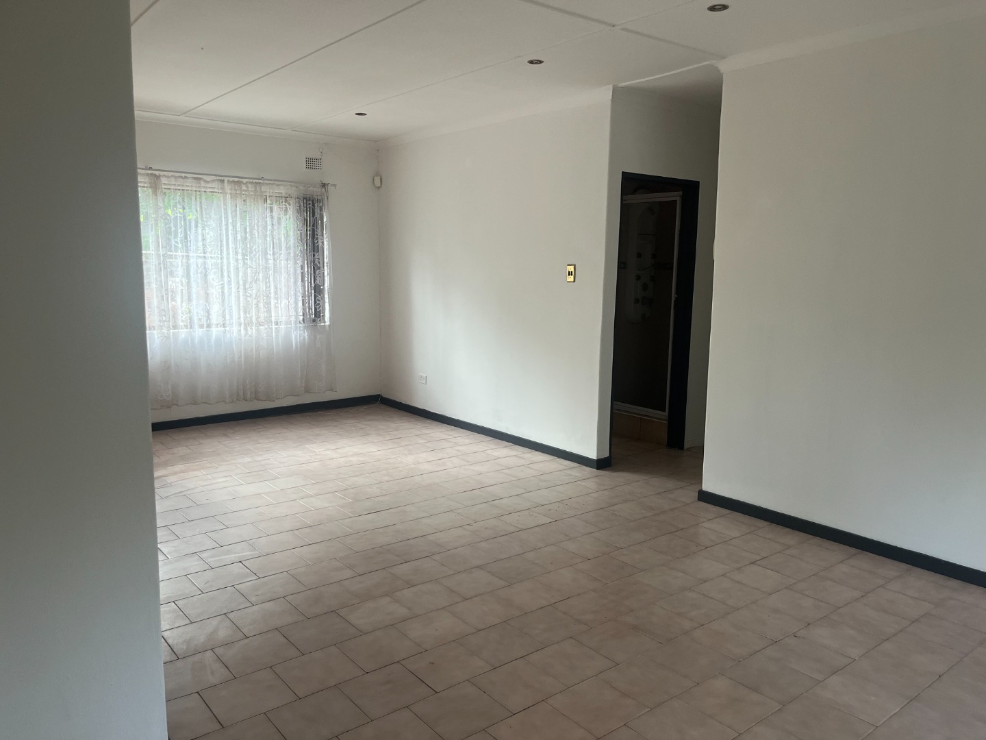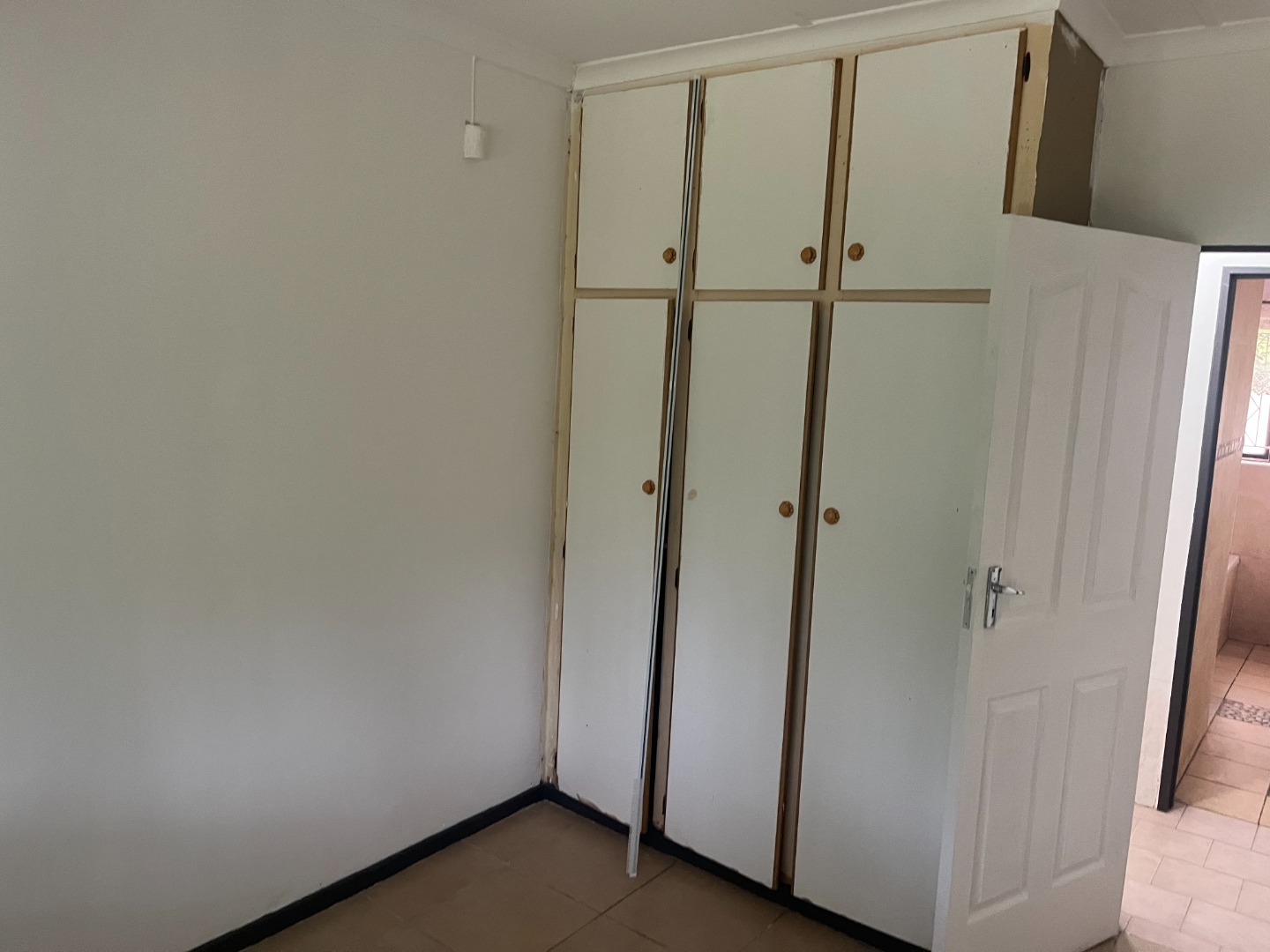 Spacious garden with pool, family home with 3 bedrooms and 2 bathrooms off patio into open living area with fitted kitchen. No stove. Laundry off kitchen with access to back courtyard. Single garage with direct access into house. Walled and gated.