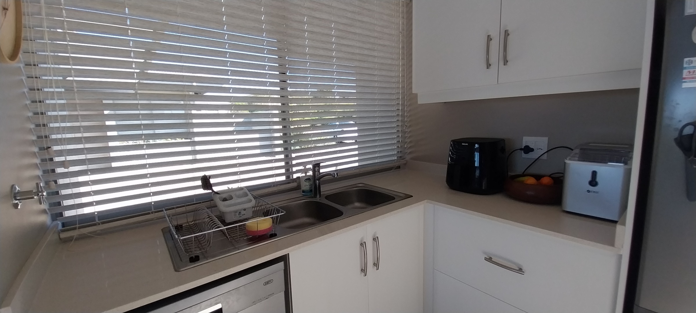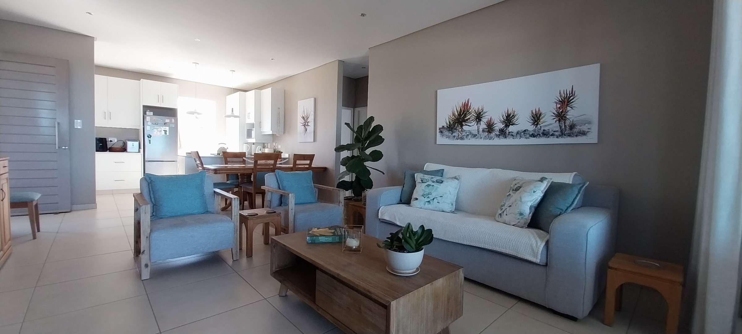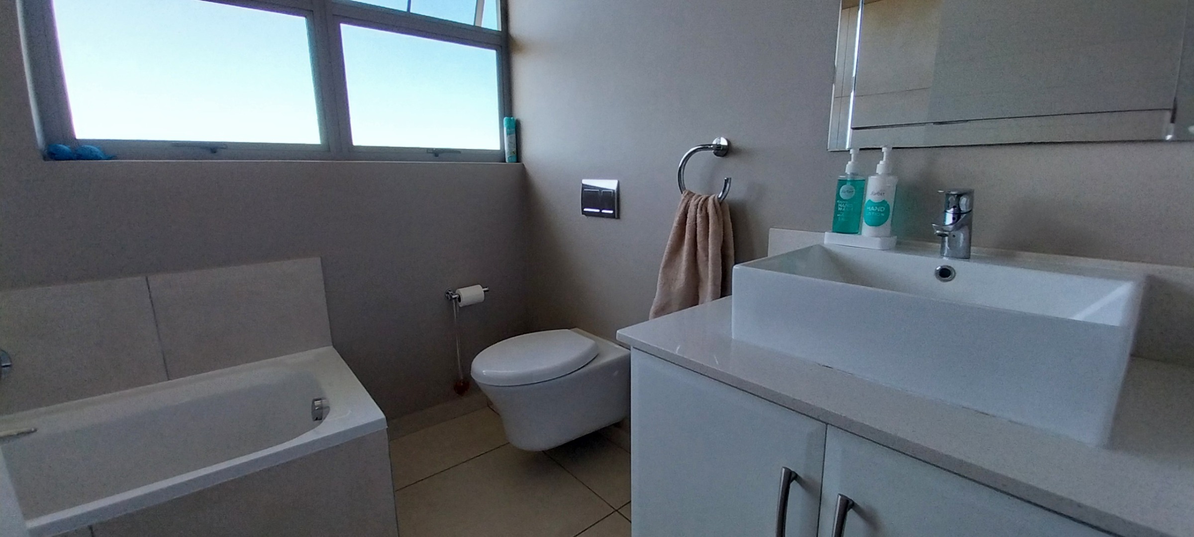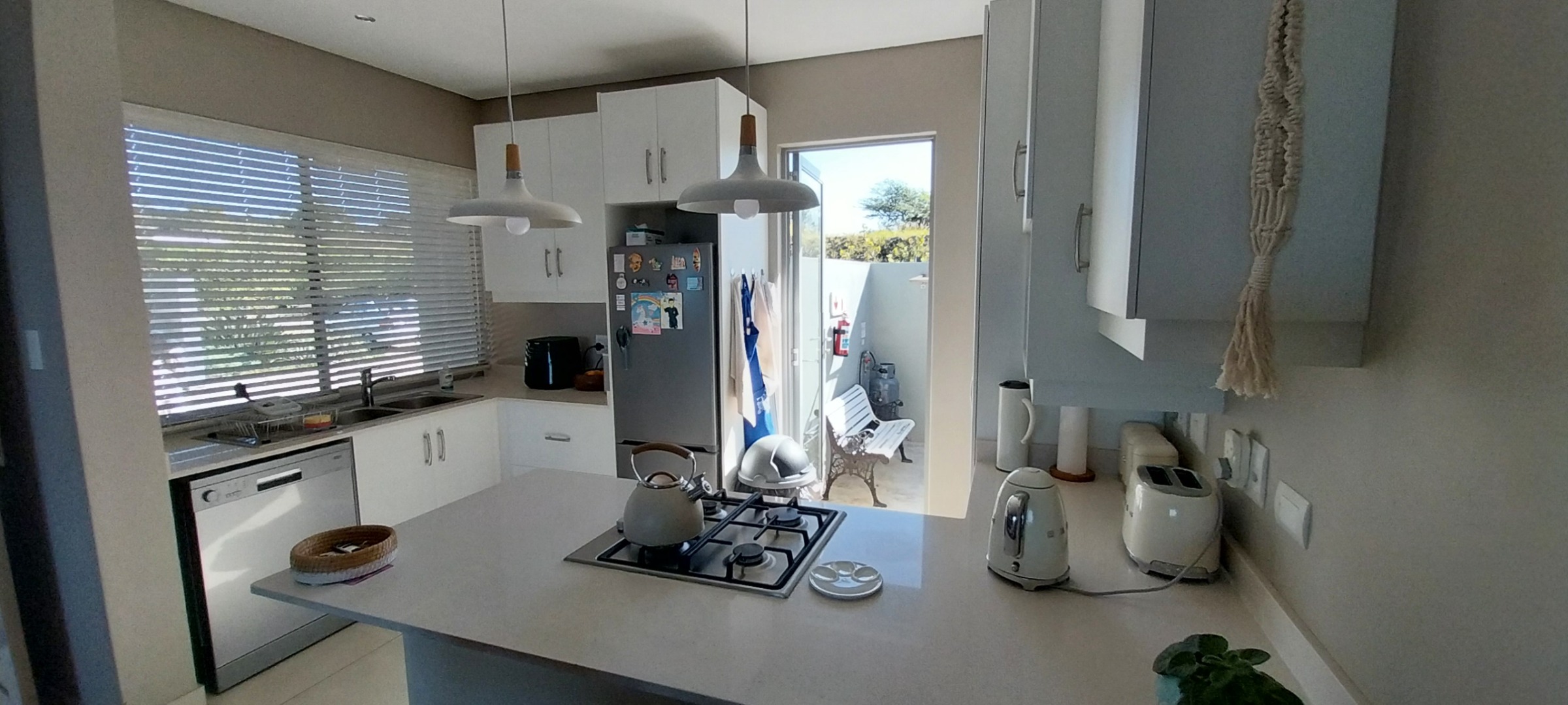 Lovely, modern massionette to rent for retirees but unit is also for sale. 2 Bedrooms with shower bathroom and separate toilet, spacious open plan living area with patio with built-in braai and good views. Single garage with small court-yard access. Security post at the main access gate with guards. Wifi is included, water is from the water plant and prepaid electricity. Property is also on the market which then offer a 2 calendar months notice if an acceptable offer is made.