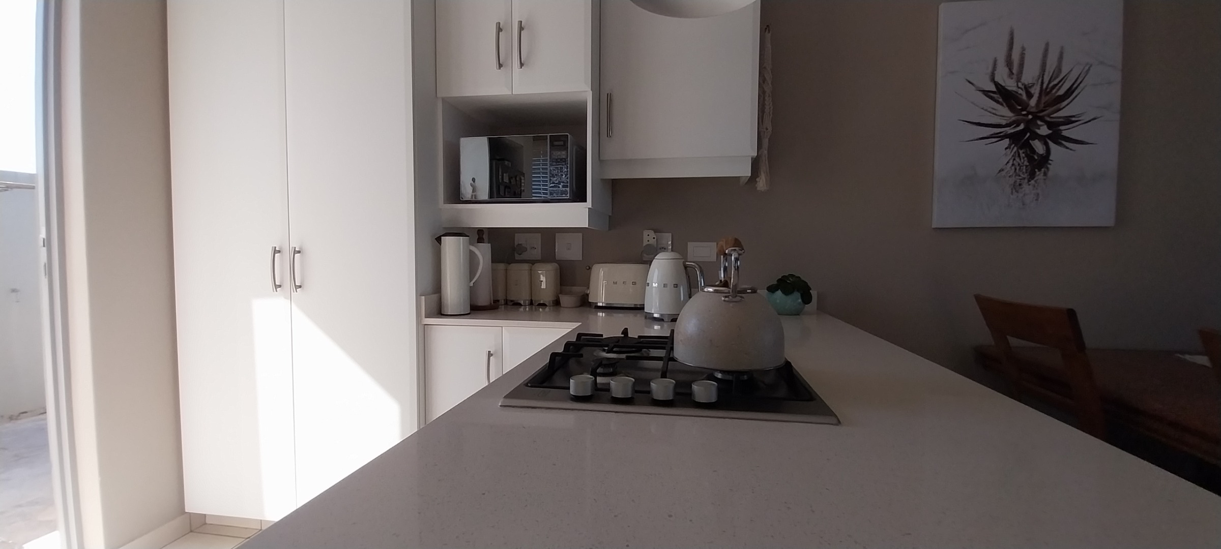 Lovely, modern massionette to rent for retirees but unit is also for sale. 2 Bedrooms with shower bathroom and separate toilet, spacious open plan living area with patio with built-in braai and good views. Single garage with small court-yard access. Security post at the main access gate with guards. Wifi is included, water is from the water plant and prepaid electricity. Property is also on the market which then offer a 2 calendar months notice if an acceptable offer is made.