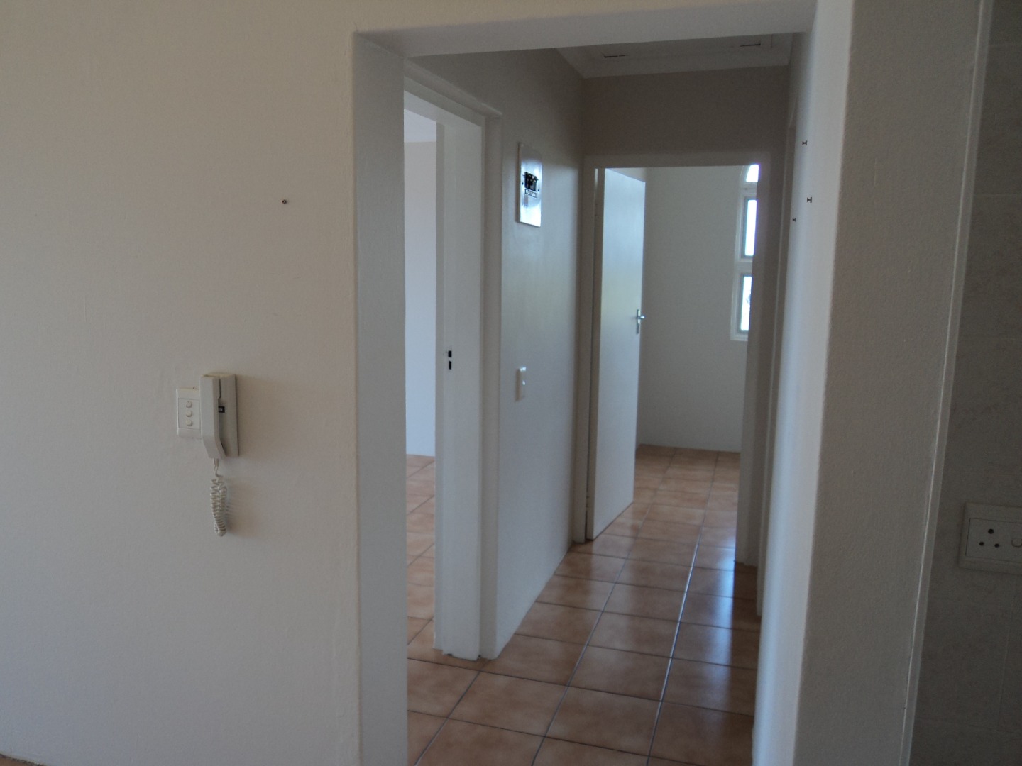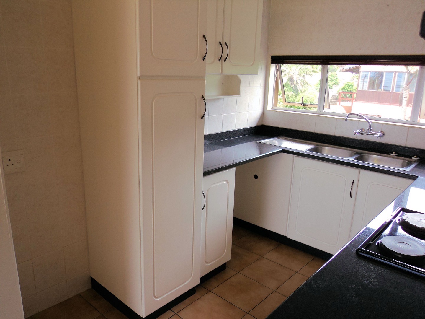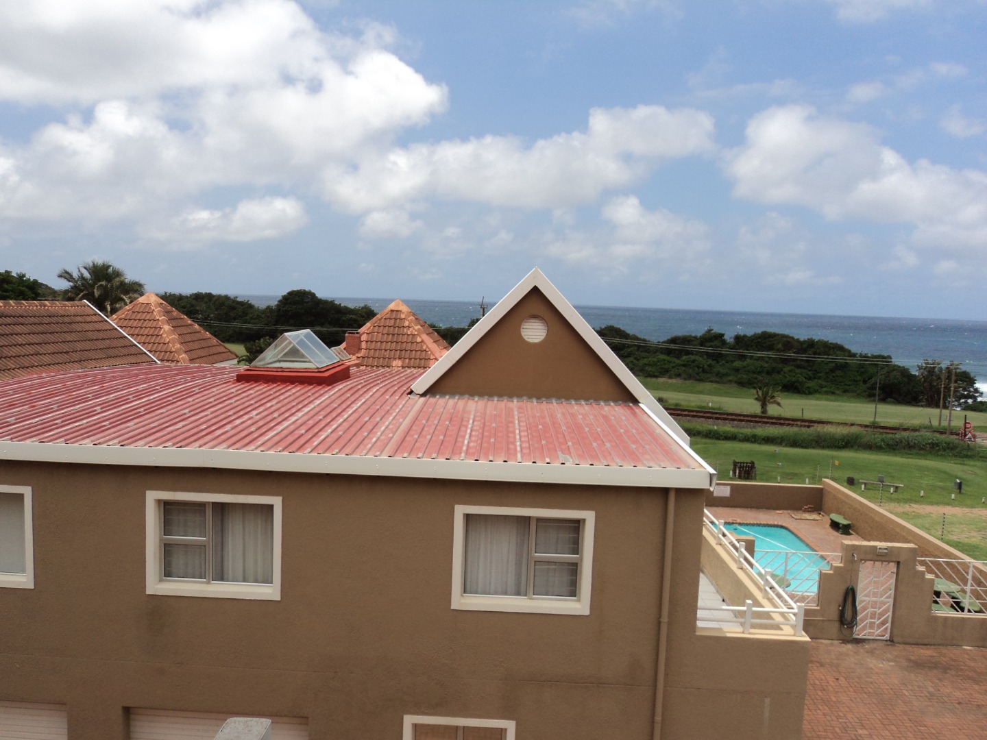 Secure 2 bedroom flat, on second floor, with full bathroom and open living area off fitted kitchen. Balcony off lounge with views over the communal pool and gof course. Main bedroom also has access to balcony. BIC and tiled floors. Lock up garage and communal pool. Walking distance to beach. Walled and remote gates. Also on the market to sell when sellers papers are in order.