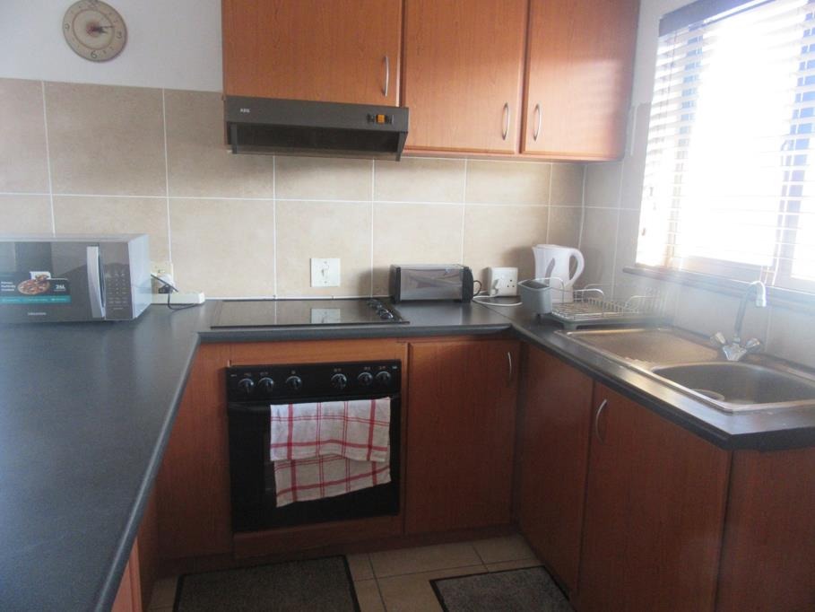 Apartment with a north facing view and communal living area off a modern kitchen, en-suit bathroom with parking bay and garage. Fully fenced and gated. Close to a beach. Balcony overlooking the golf course. Unfurnished @ R9000 and Furnished @ R10000 excluding water and electricity.