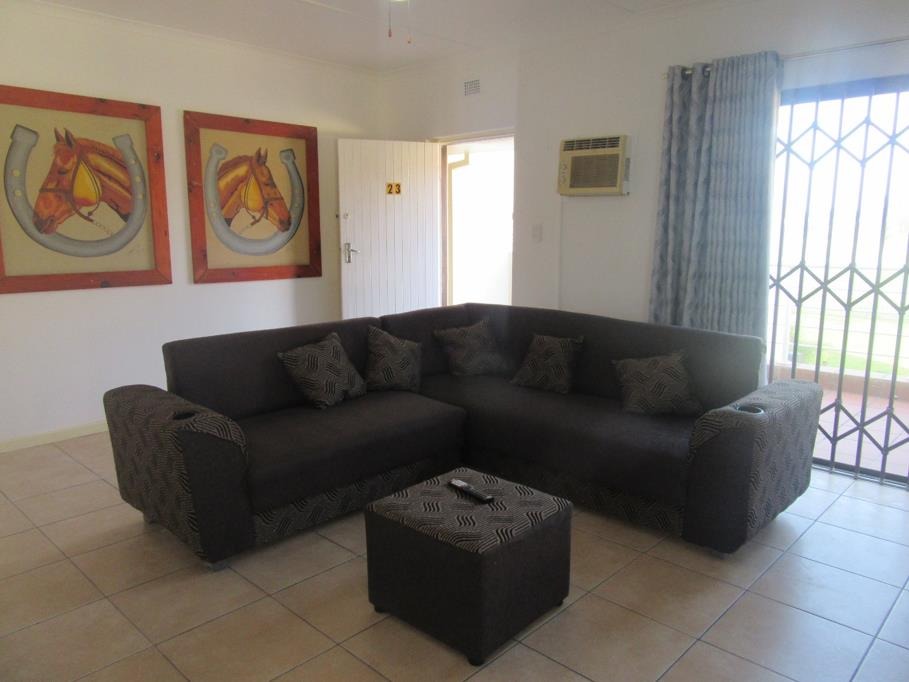 Apartment with a north facing view and communal living area off a modern kitchen, en-suit bathroom with parking bay and garage. Fully fenced and gated. Close to a beach. Balcony overlooking the golf course. Unfurnished @ R9000 and Furnished @ R10000 excluding water and electricity.